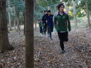 月曜日から土曜日までの放課後、活動しています。日曜日は、大会の日程に合わせて練習日を設定。主に校内にある400mタータントラックを使っての練習が中心。冬期には、学校周辺にあるクロスカントリーコースで体力をつけています。又、各基本ドリルや基礎トレーニングを毎日の練習に取り入れ、それぞれ個々に合わせたトレーニングを計画しています。