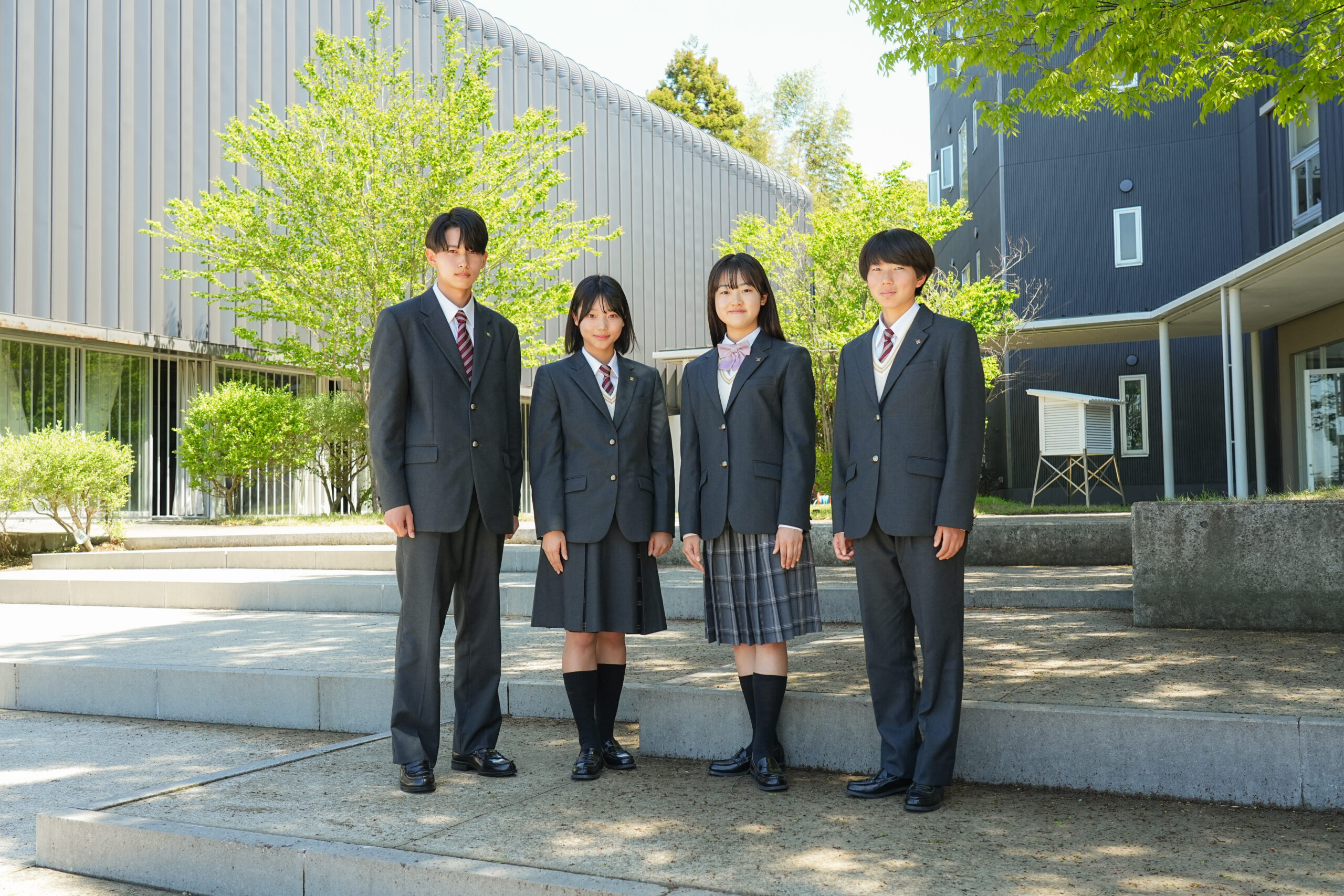 男女とも冬服は格調高い2つボタンのスーツスタイル。色は落ち着きのあるチャコールグレーです。夏・冬服ともに機能性と耐久性を追求した素材を使用。アクティブなスクールライフを約束します。