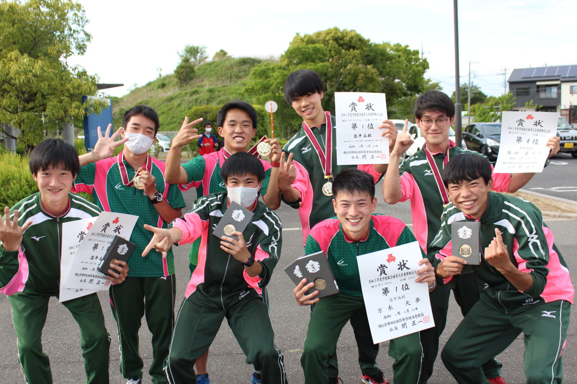 4月23日(金)〜25日(日)の3日間「越谷しらこばと競技場」にて令和3年度学校総合体育大会東部地区予選会が行われました。久々の大会で緊張している様子も伺えましたが、男子400m万木大夢[Dublin Scioto H.S出身]が49秒05で優勝、男子5000m小笠原壮良[越谷光陽中出身]が14分58秒19で優勝、4×100mリレー・4×400mリレーでも初の両リレー優勝し、男子総合107点を獲得し第2位に入りました。5月9日より「熊谷スポーツ文化公園陸上競技場」で県学校総体が行われ本校からは、15種目28名の選手が出場します。福井インターハイに向け一丸となって頑張ります。引き続き応援よろしくお願いいたします。