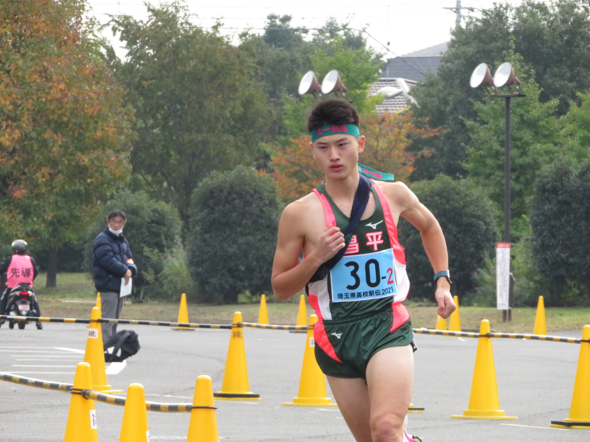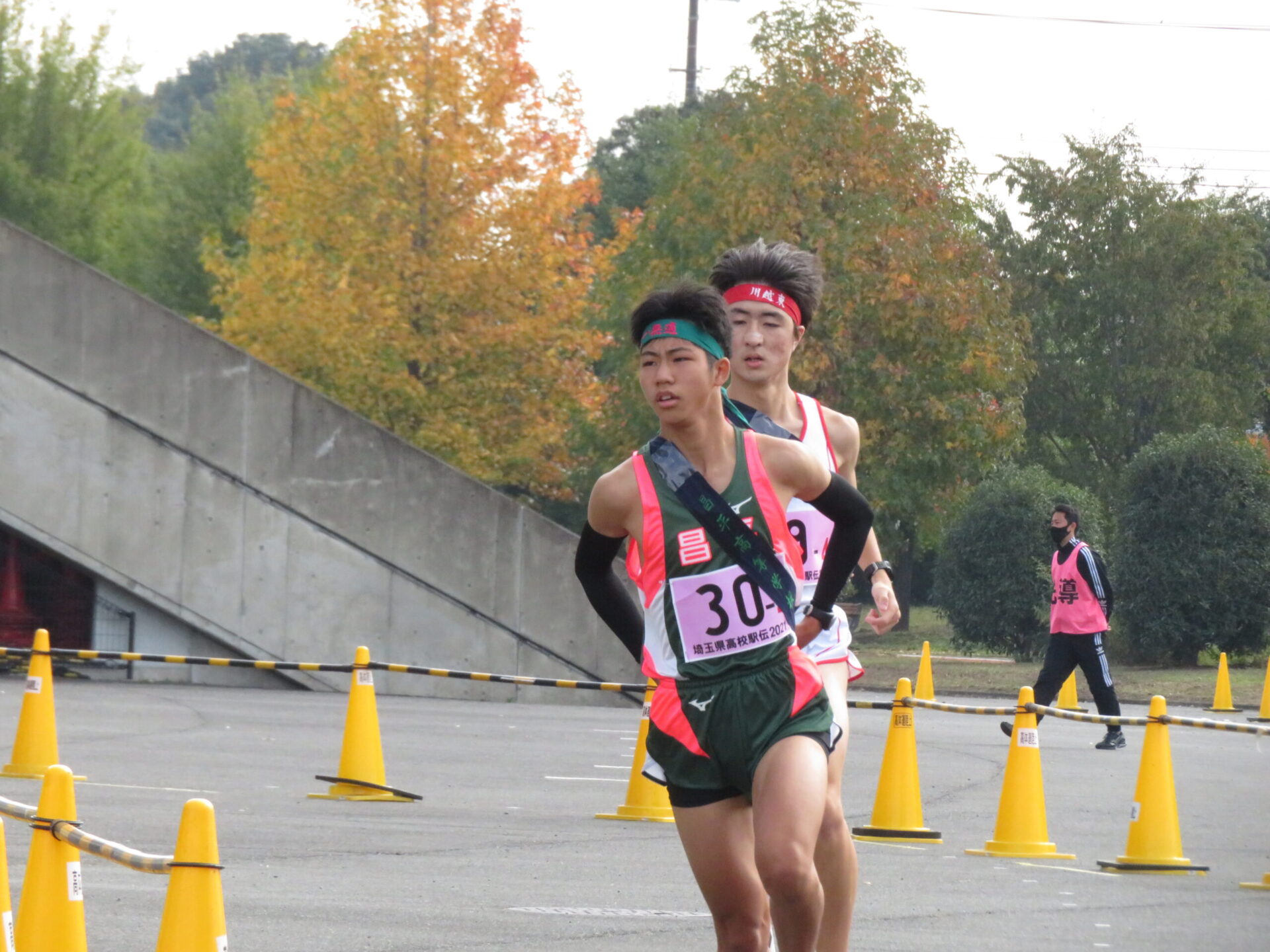 昨日、熊谷スポーツ文化公園にて『全国高校駅伝競走大会埼玉大会』が行われました。今年の駅伝チームは、7名中4名が短距離選手の編成になってしまいましたが、1区10㎞を3年生小笠原壮良が、30分59秒で走り5位で襷を繋ぐと、2区3㎞を短距離、3年生万木大夢が9分52秒の9位でがんばり、最終7区で、2年生鳩貝相太が力走、2時間25分57秒でゴールし、出場77チーム中28位と言う成績でした。