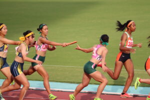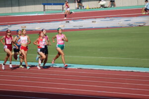 100mHに出場した守屋仁菜(1-2)が3位。走幅跳に出場した横田琴子(2-2)が優勝1600mリレーに出場した増子(1-1)-岡崎(1-4)-守屋(1-2)ー横田(2-2)の走順で準優勝、800mに出場した岡安(2-6)が優勝、1500mに出場した川原井(2-2)も優勝するなど多くの選手が大活躍!!結果総合でも2点差で負けましたが準優勝することができました。