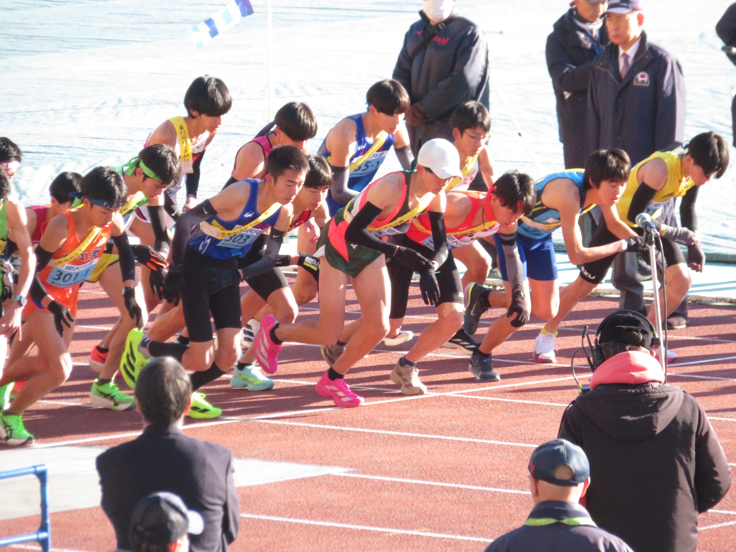 2月1日(日曜日)「熊谷スポーツ文化公園陸上競技場にて「第93回埼玉駅伝競走大会」が行われました。今年度は、競技場を発着とした駅伝に変更となり29.5㎞を6区間で行われました。