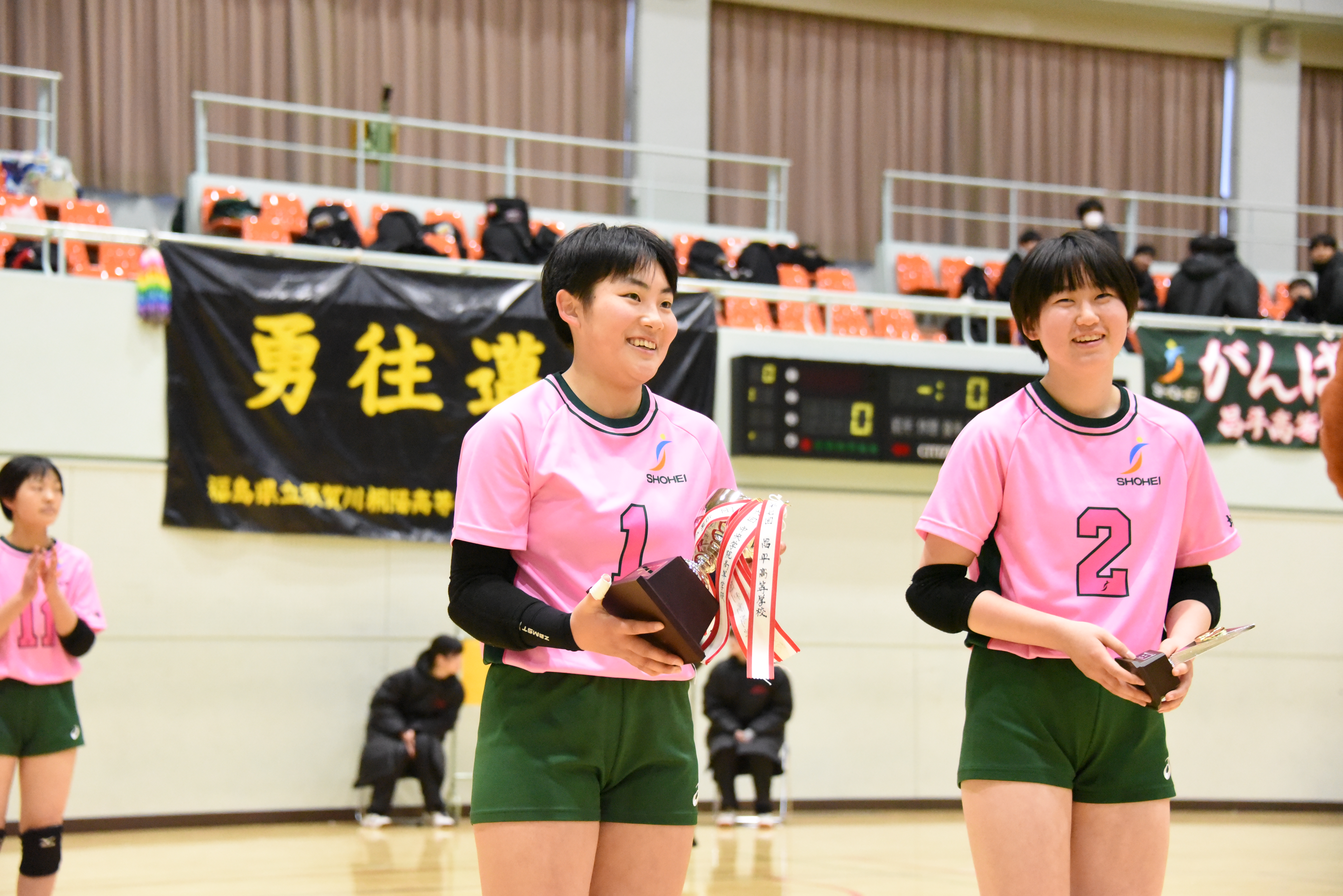年が明け令和2年がスタートしました。4日より練習を始め5日~6日に茨城県古河市で開催されたはなももカップに今年も参加しました。年末の宮城遠征合宿中に参加できない学校が出たとの連絡があり急遽、本校はA・Bチームの2チーム参加となりました。チーム全員のレベルアップを目標に日々練習を重ねてきましたが、2チームに分ける不安と夏季大会に続き優勝カップを持ち帰るという目標にプレッシャーを感じた大会でした。初日の一次大会ではAチームが優勝、Bチームは宮城県の明成高校に敗れ3位決定戦へと進み、敗退すると翌日のトーナメントは4位シードで優勝したAチームと準決勝で当たるゾーンに進むということで、Bチームは頑張り栃木県の小山南高校と対戦し見事勝利し第3位となり決勝まではAチームと当たらないゾーンになりました。