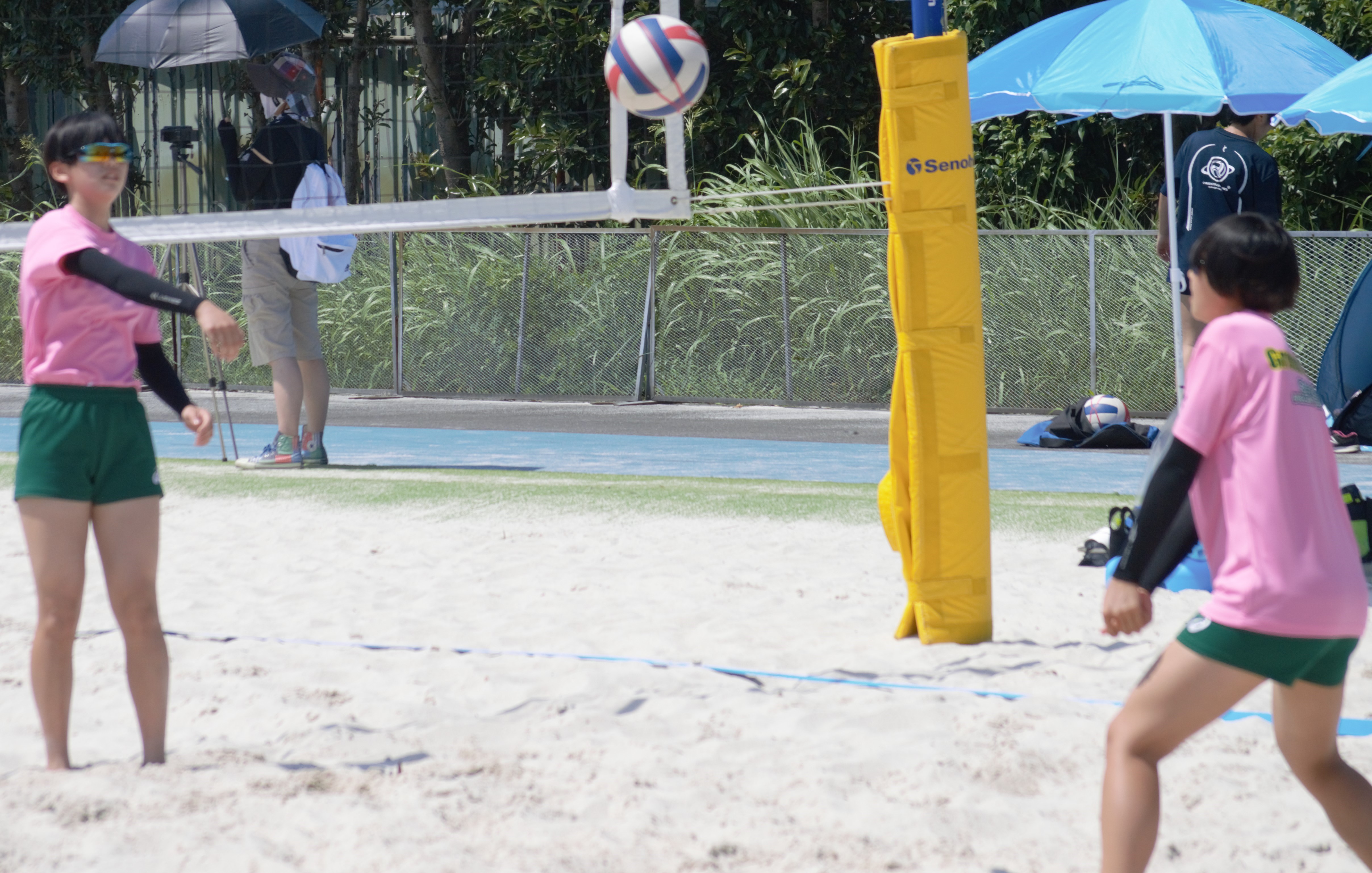 8月22日(土)23日(日)の二日間、しらこばとホワイトビーチにおいてU-18埼玉県ビーチバレーボール選手権が開催されました。昨年に続き今年も2チームのエントリーで臨み、敗者戦から二日目へと進むことが出来ました。三年生チームは内山藍里・宮﨑夢乃ペア、一年生チームは吉川左和乃・大沢蓮華ペアでした。2チームとも敗者トーナメントから勝ち上がり頑張って戦いました。二日間本当に楽しかったという感想を聞くことが出来、今年も充実したビーチバレーへの参加でした。大会運営に当たられた役員の先生方ありがとうございました。また暑い中応援して下さった保護者の皆様ありがとうございました。