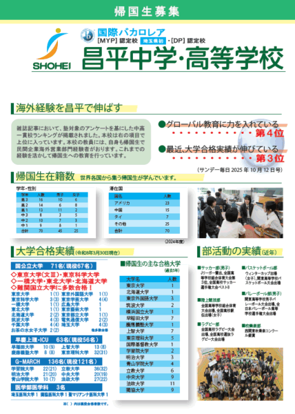 昌平中学・高等学校は以下の外部主催説明会に参加します。ぜひご参加ください。 1.海外学校説明会(海外子女教育振興財団主催) 5月7日(木) アメリカ・コロンバス 5月9日(土) アメリカ...