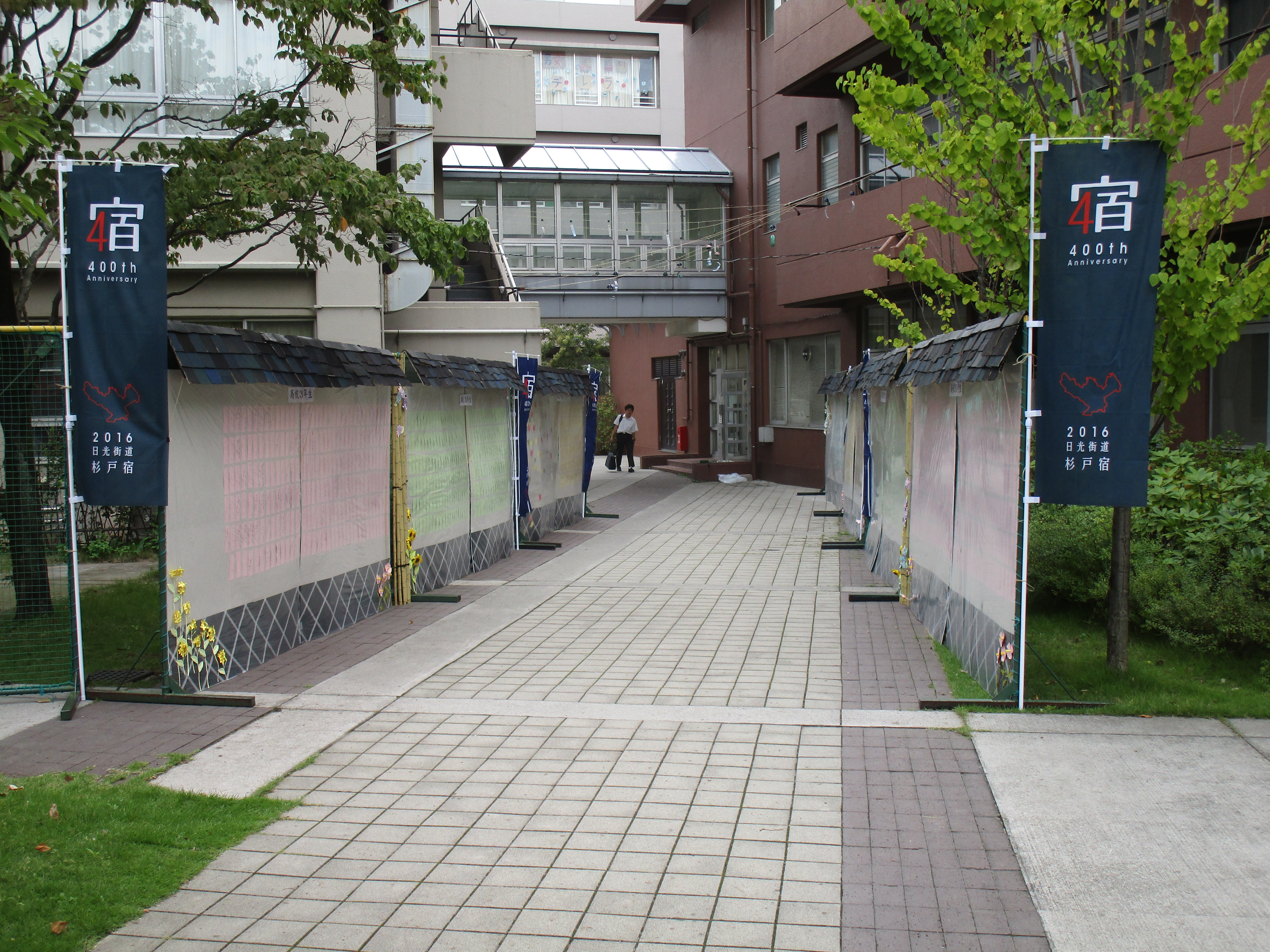 杉戸宿開宿400周年に関連して、「宿」というものを考えた時、そこは目的地ではなく、通過点としての多くの人の交流から様々な文化が行き交った場所である。昌平祭としては、昌平中学・高等学校を通過点として未来へ向かって成長していく自分たちを表現したい。その観点からテーマを「旅人」としました。