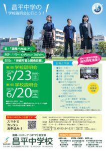 来る5/23(土)、6/20(土)10:00~11:30第2回および第3回昌平中...