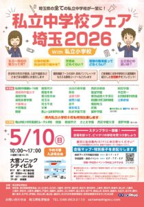 来る5/10(日)10:00~17:00、大宮ソニックシティにて、私立中学校フェ...