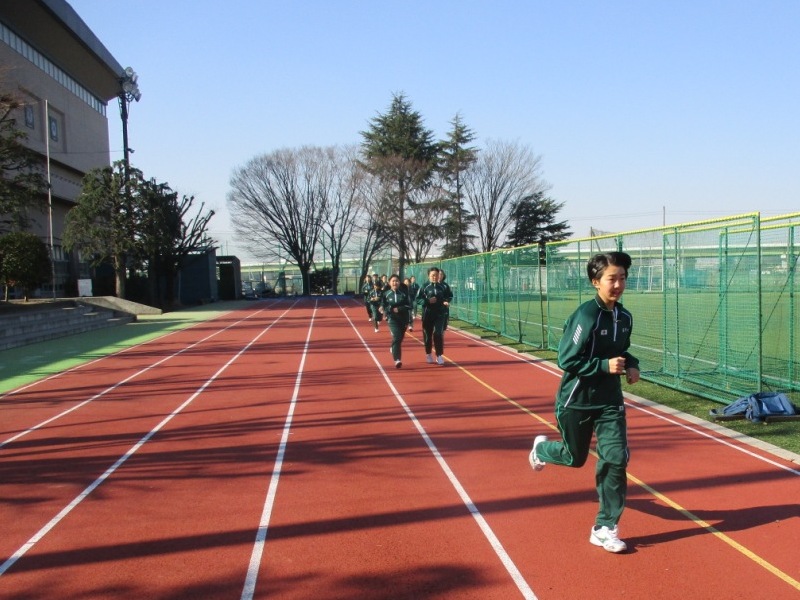 体育では持久走が始まりました。単に走るのではなく、チームで分かれてトレーニングメニューを立てています。「ゆっくり走る」「全速力で走る」「休息をとる」これらを組み合わせて効果的に持久力を高めます。毎回の授業で走った後はタイム、心拍数を計った上で、結果を話し合います。