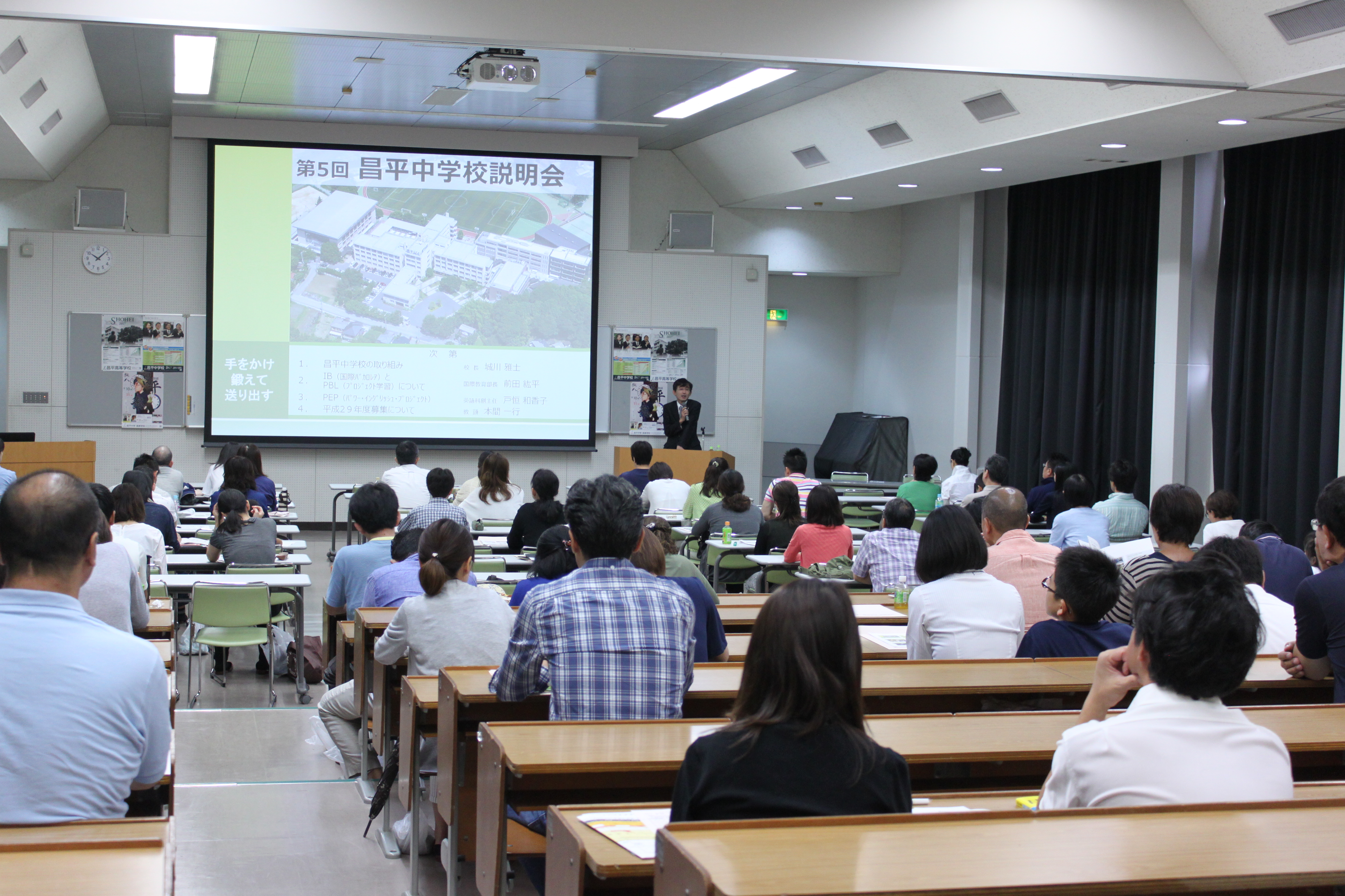 8月28日(日)に第2回腕だめしテスト&教育講演会、同時開催で第5回学校説明会が行われました。第一部では安田 理先生による教育講演会が行われ、とても興味深い講演会となりました。第二部は学校説明会で、城川校長から学校概要の説明があり、前田国際教育部部長からIB教育の取組みとプロジェクト学習について、戸恒英語科副主任からパワーイングリッシュプロジェクトの説明がありました。また、同時進行で腕だめしテストが行われ、難しい問題にも最後まで集中して取り組んでいる様子が見受けられました。多くのご参加ありがとうございました。