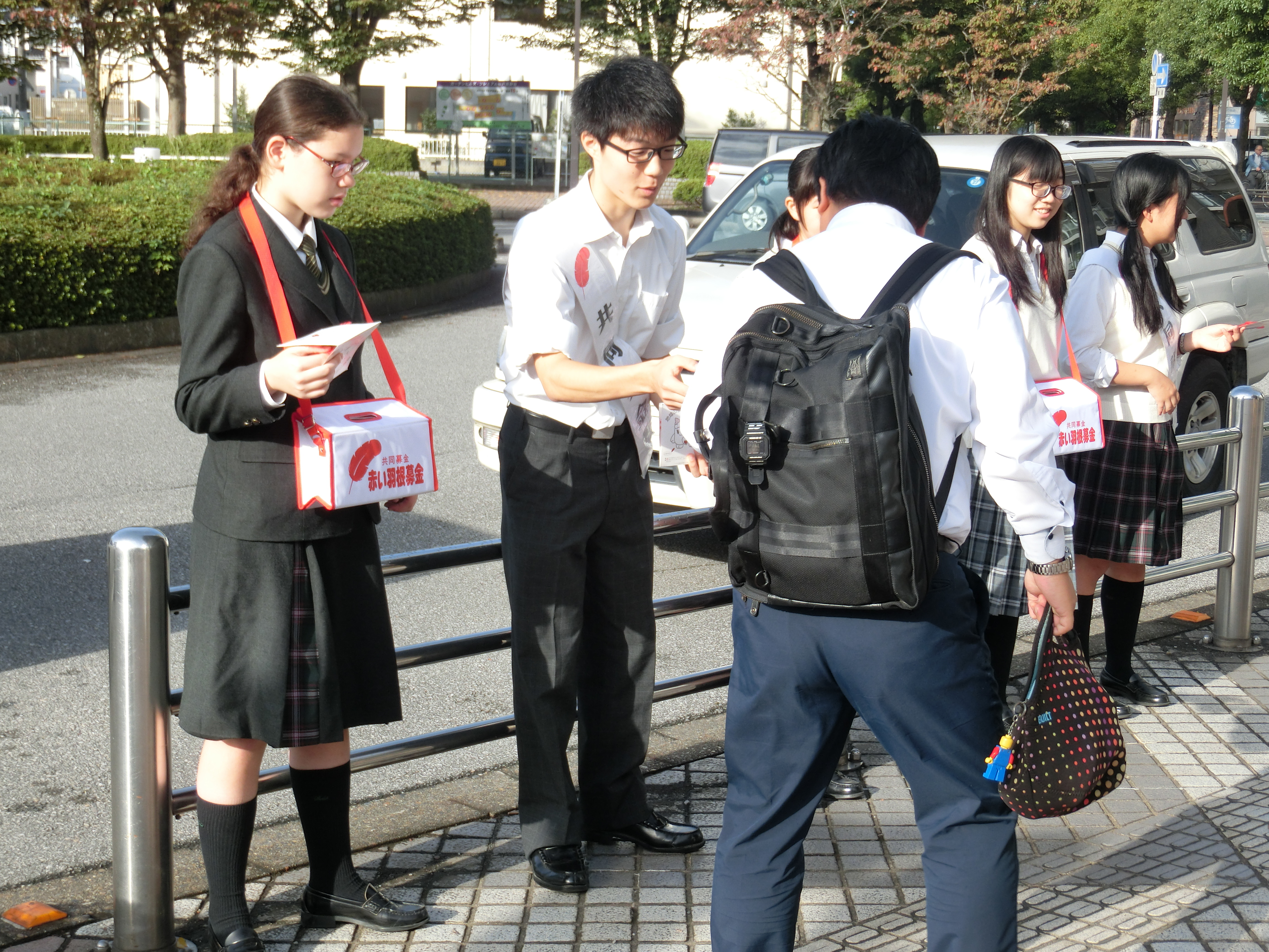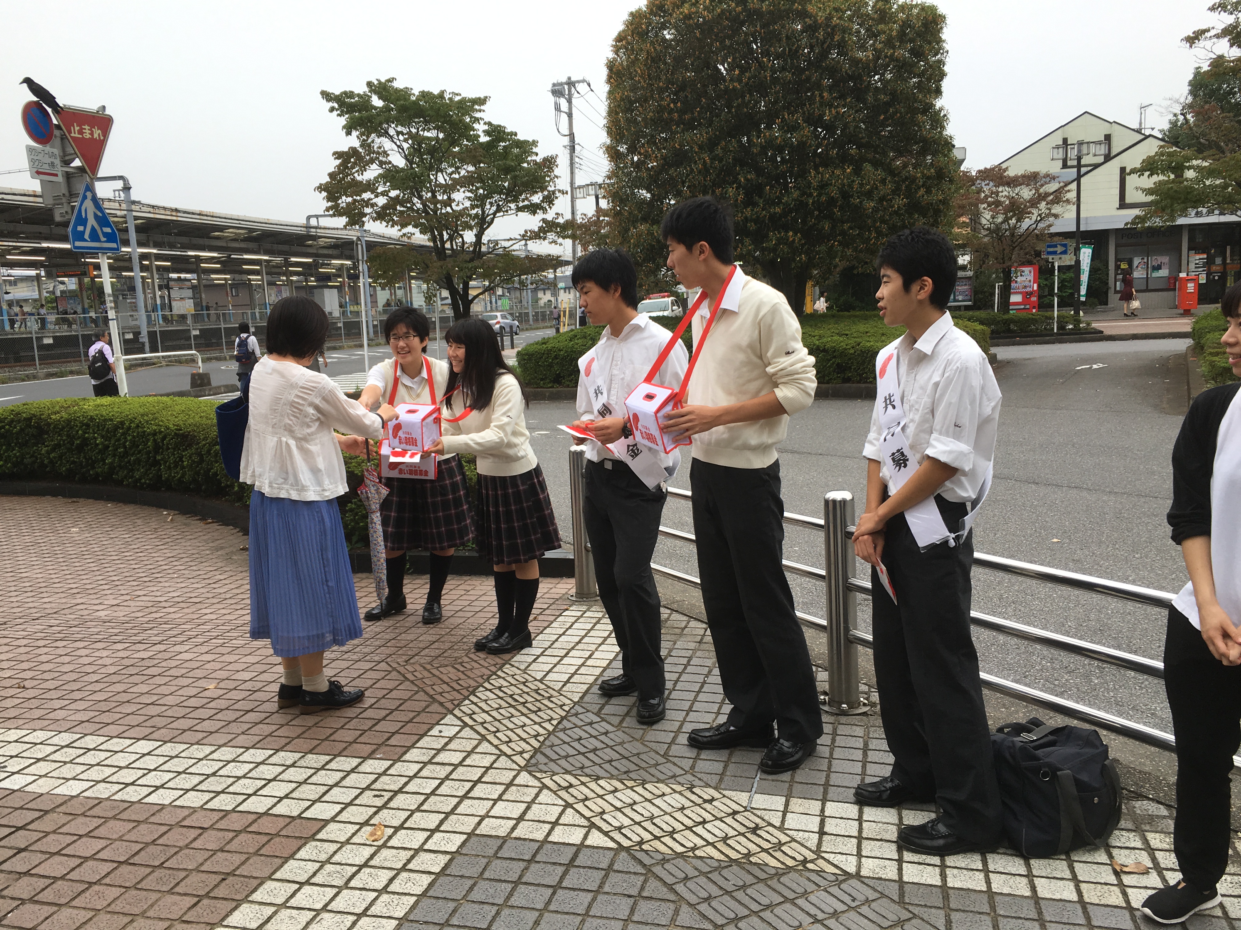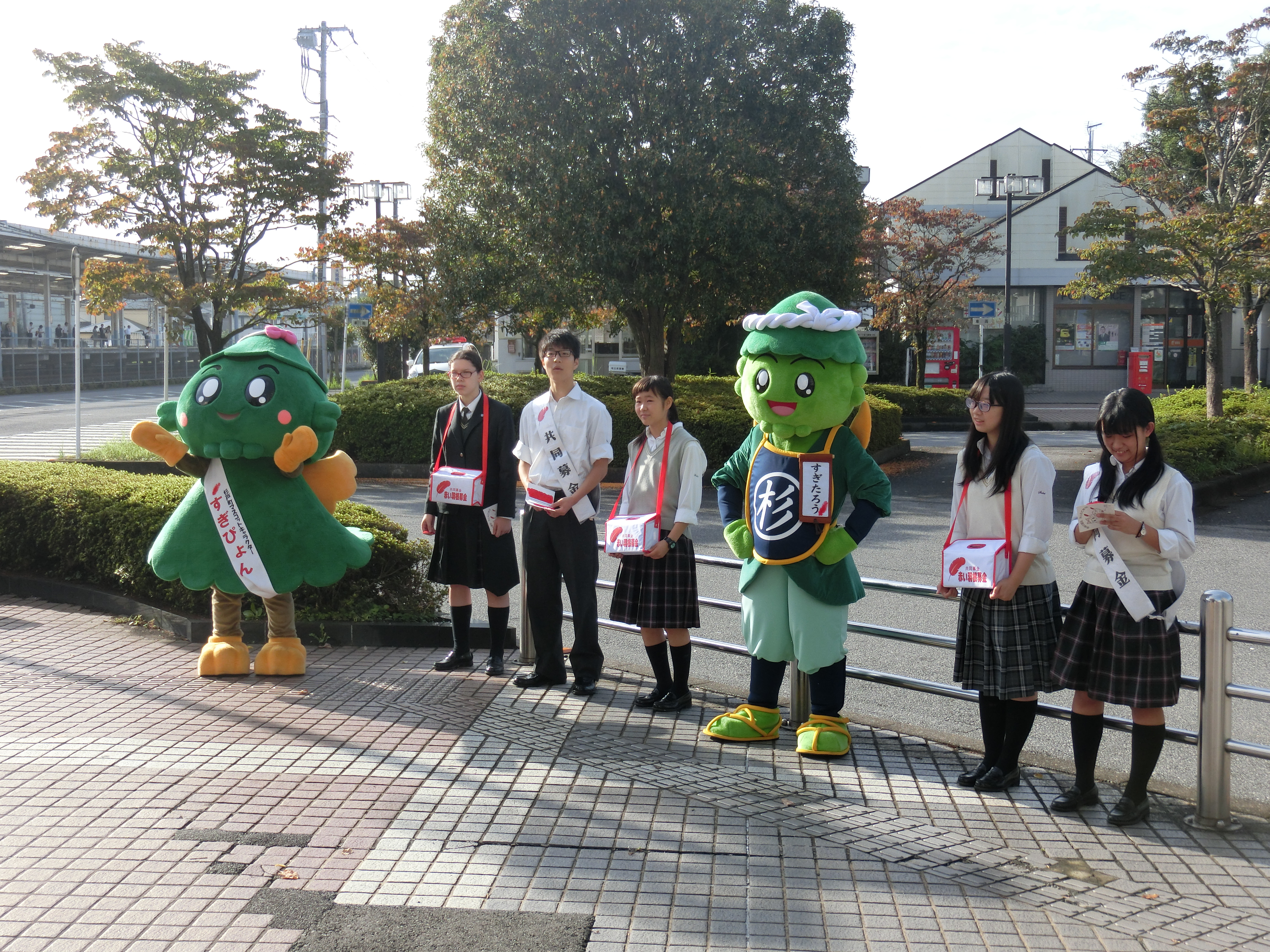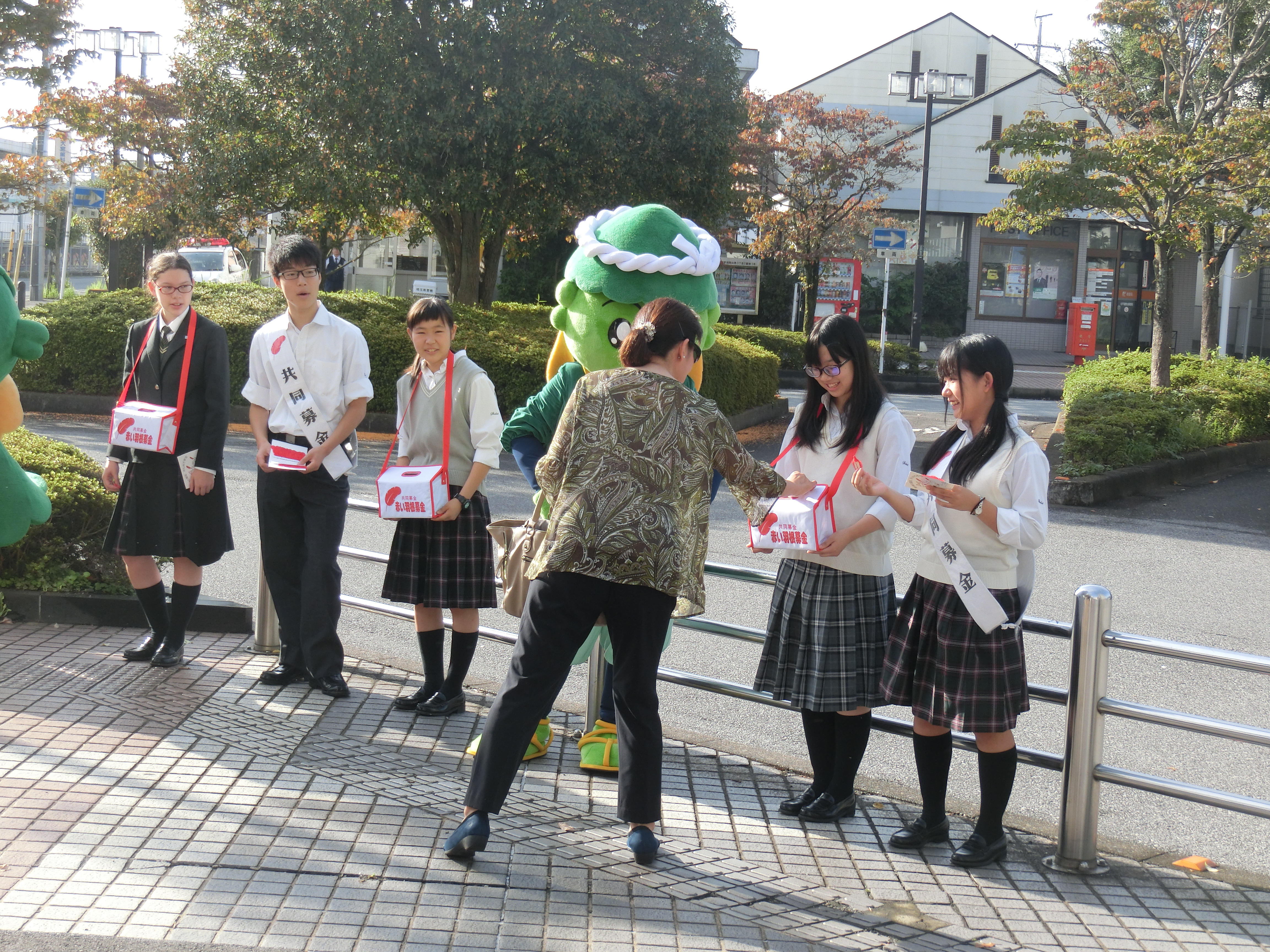10月3日、4日の朝、中高生徒会の生徒たちによる、赤い羽根共同募金活動が行われました。杉戸高野台駅前にて、2日間にわたり、活動を行いました。2日目には、杉戸町の公式キャラクターである、すぎ太郎と、すぎぴょんも参加してくれました。朝のお忙しい中多くの方が声をかけてくださり、共同募金にご協力してくださいました。たくさんのご協力、ありがとうございました。