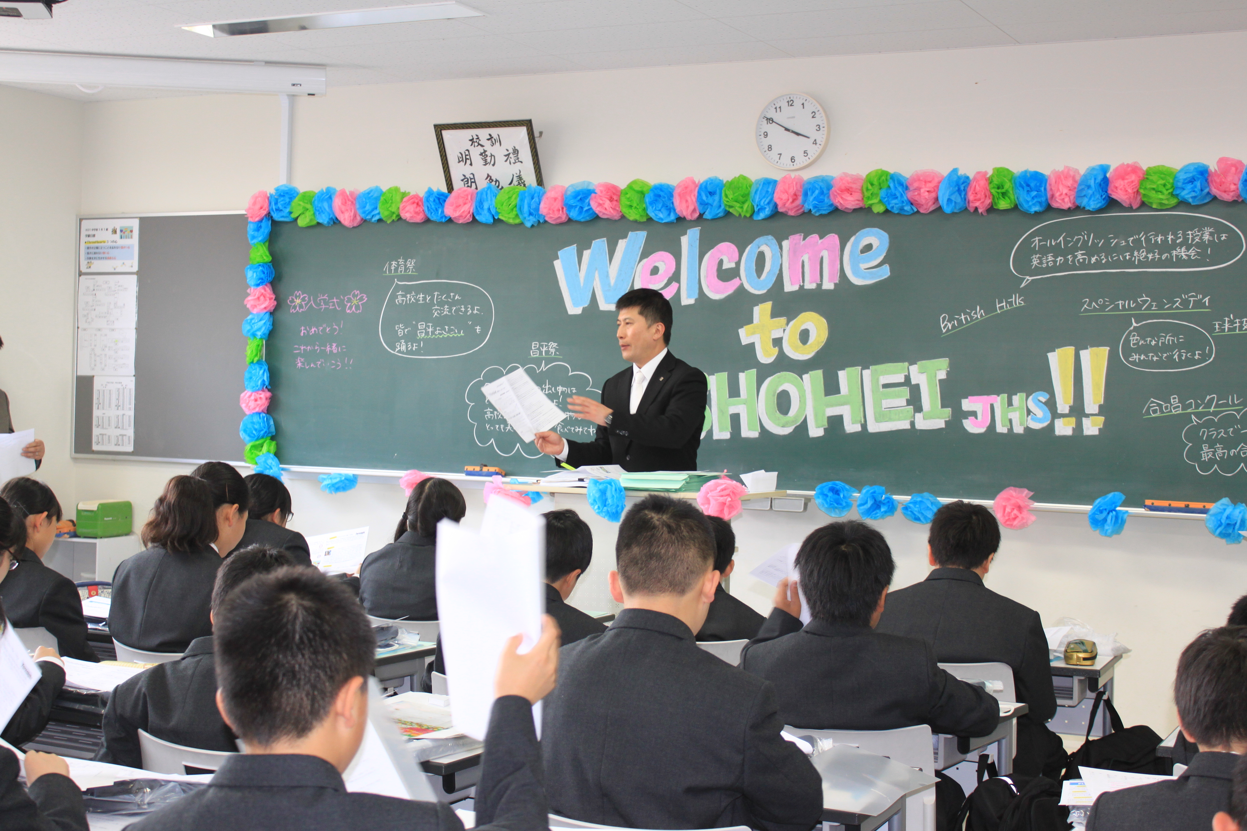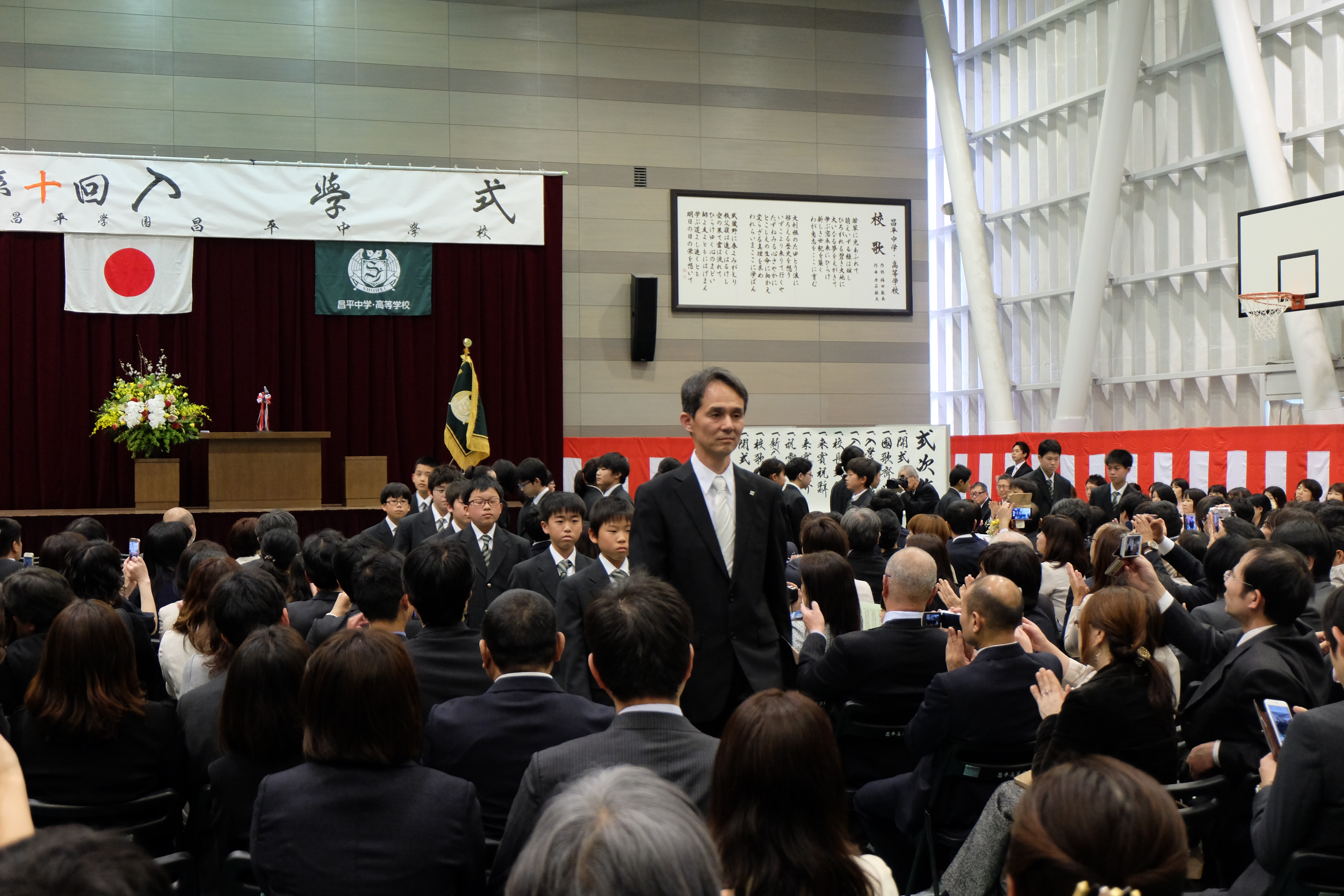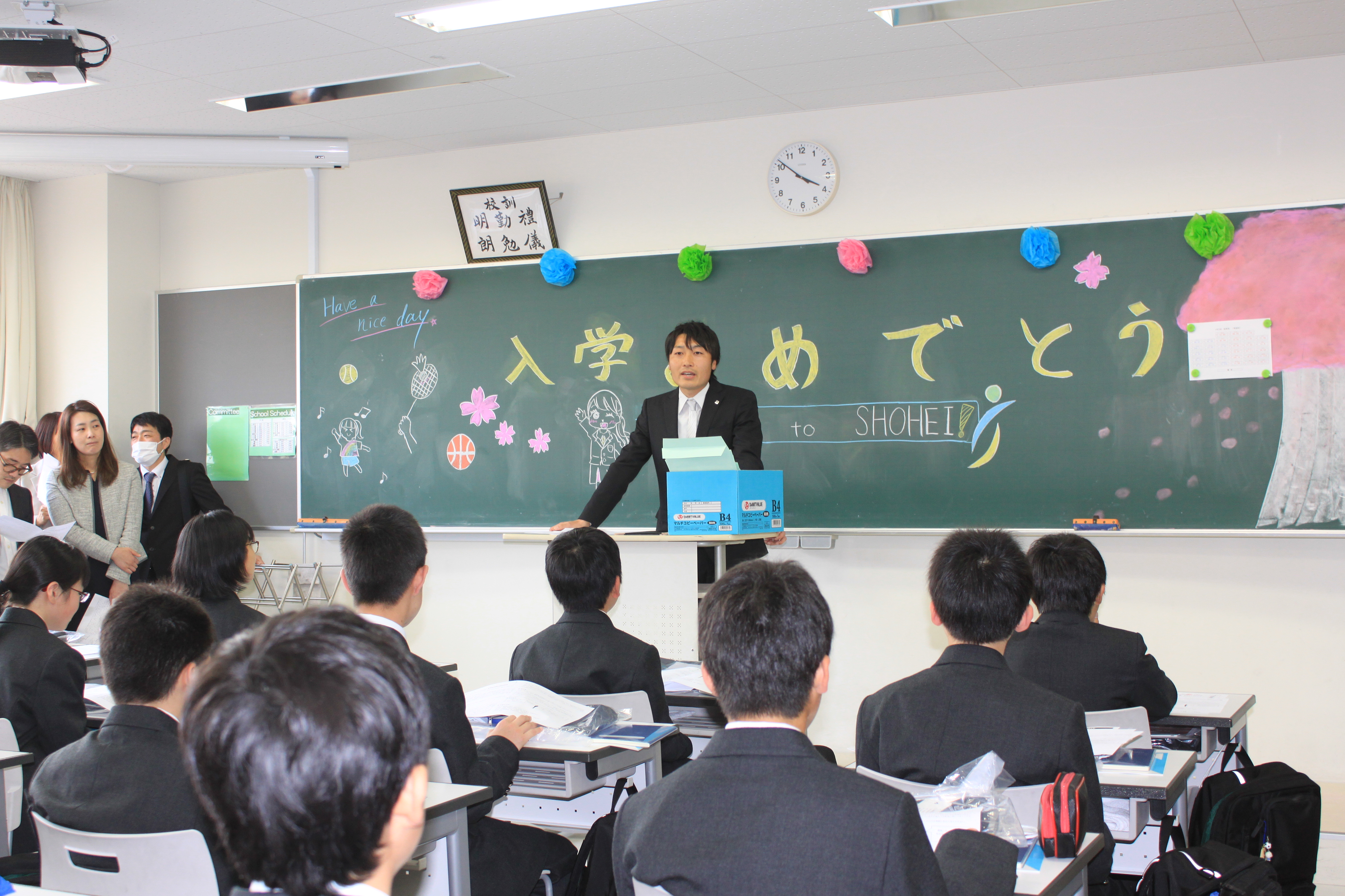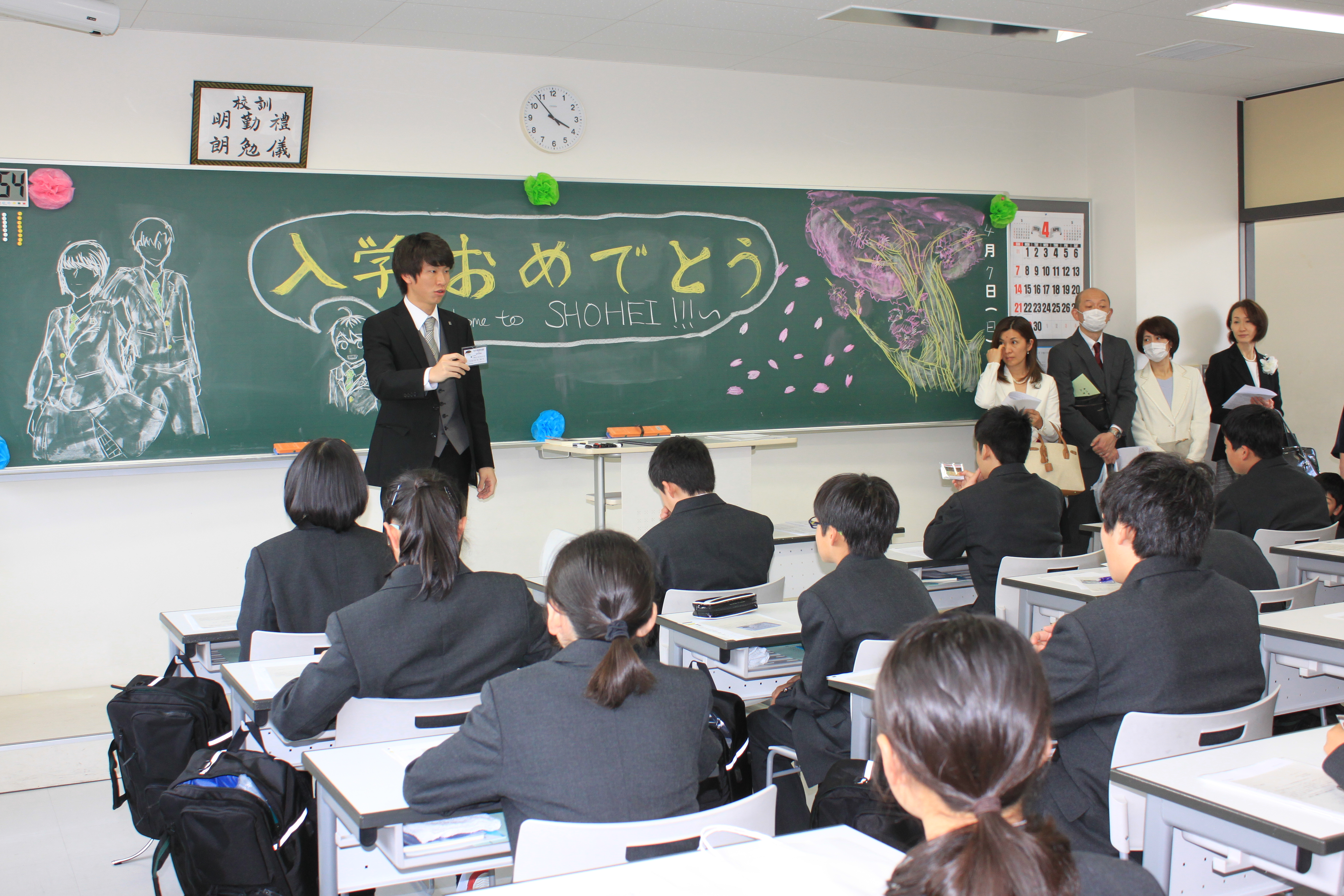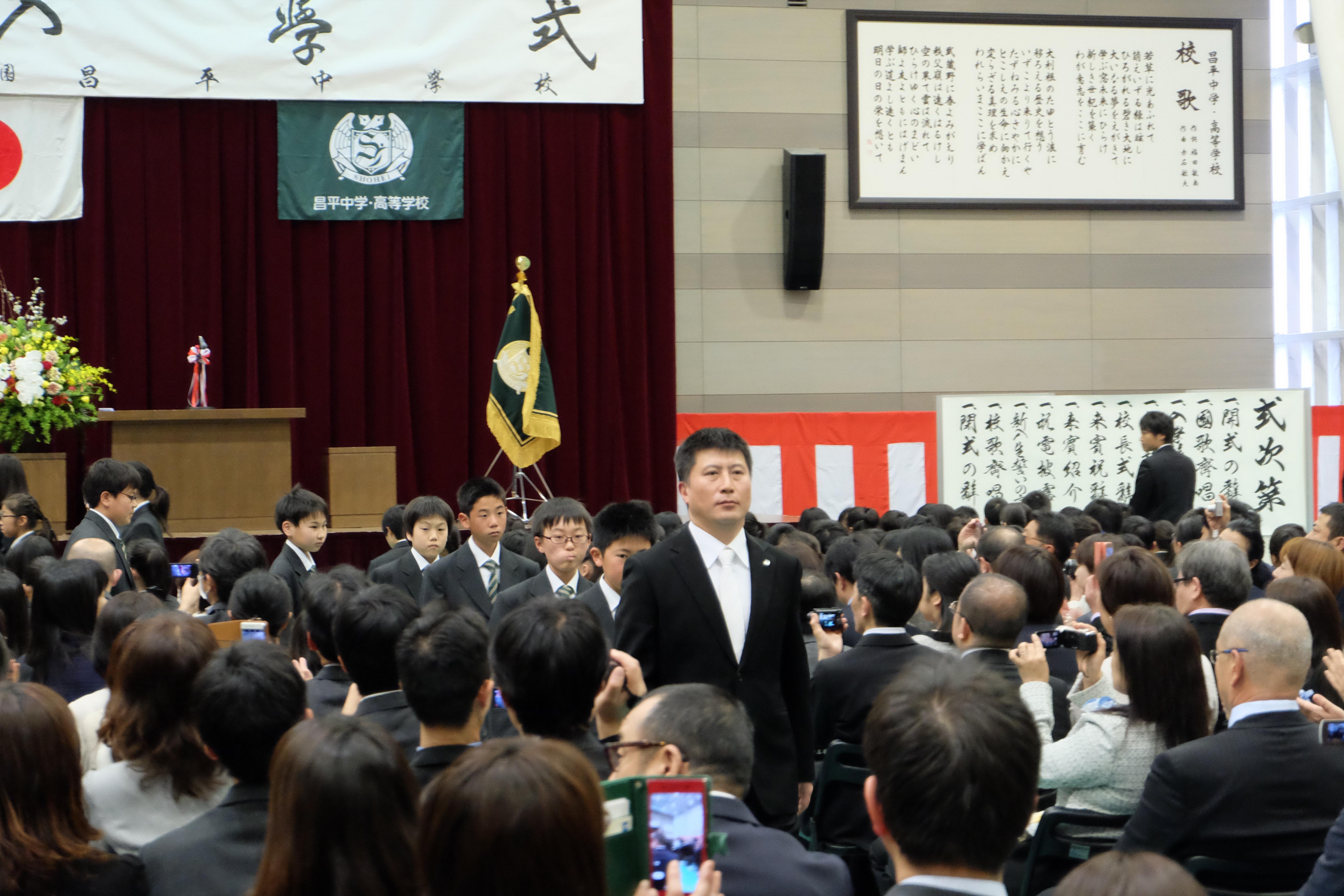校門の桜も満開の中、節目の年となる10年目の入学式が行われ、121名の10期生が昌平生の仲間入りをしました。入学式の呼名では、全員がとても大きくはっきりとした声で返事をし、これからの活躍を期待させる素晴らしい式となりました。入学式後のホームルームでは、保護者の皆様もご一緒していただき、担任の自己紹介に笑いが起こったり、これからの学校生活の話に真剣な表情で聞き入ったり、新しいスタートを実感していました。何事にもチャレンジしこれから6年間頑張っていきましょう。入学おめでとうございます!中2,3の先輩方は午前中から1年生の教室の飾りつけをしてくれました。頼もしい先輩になりそうですね!