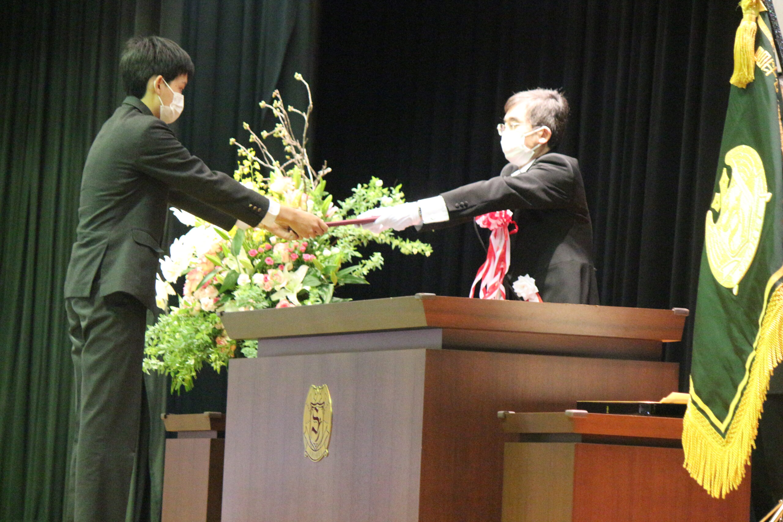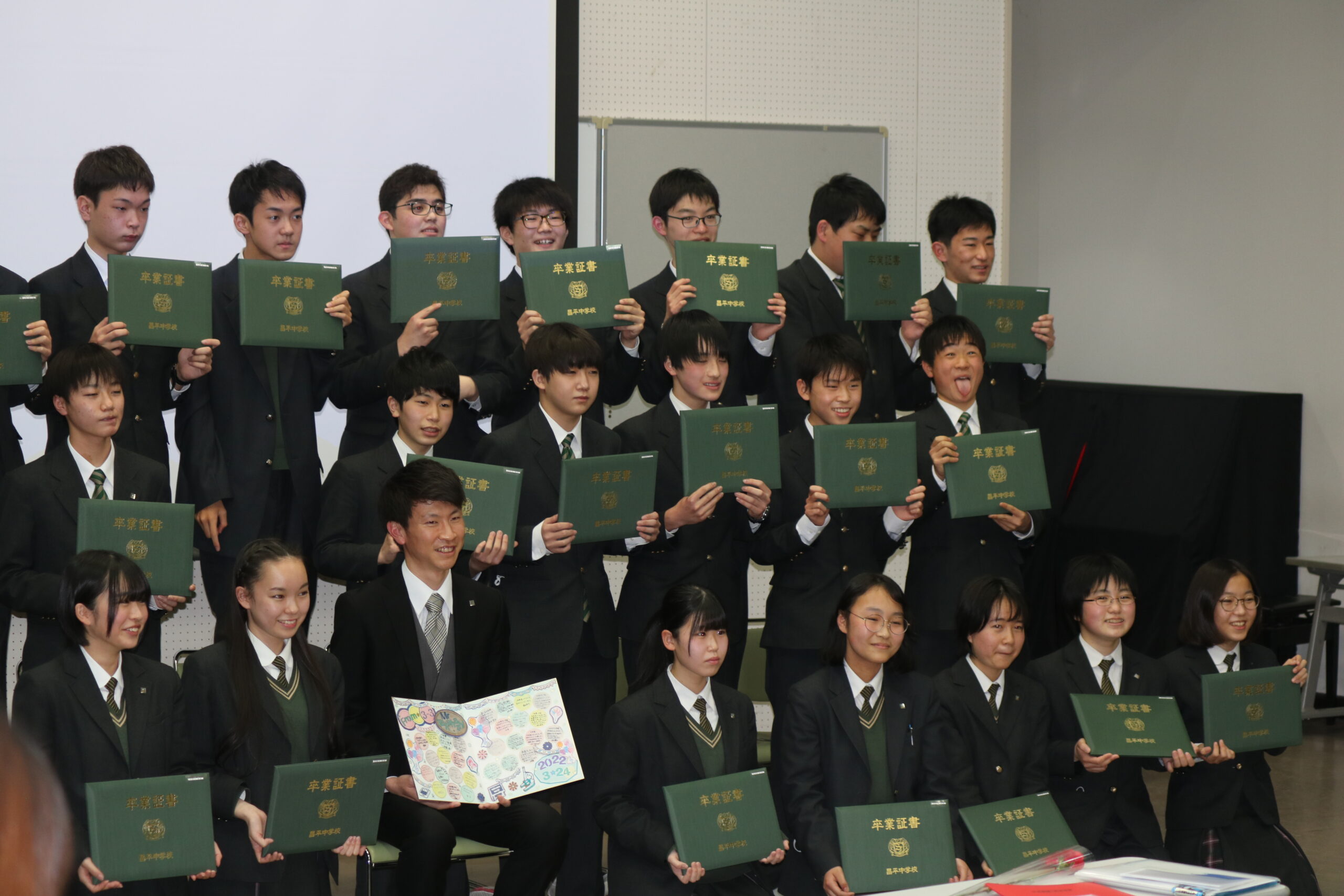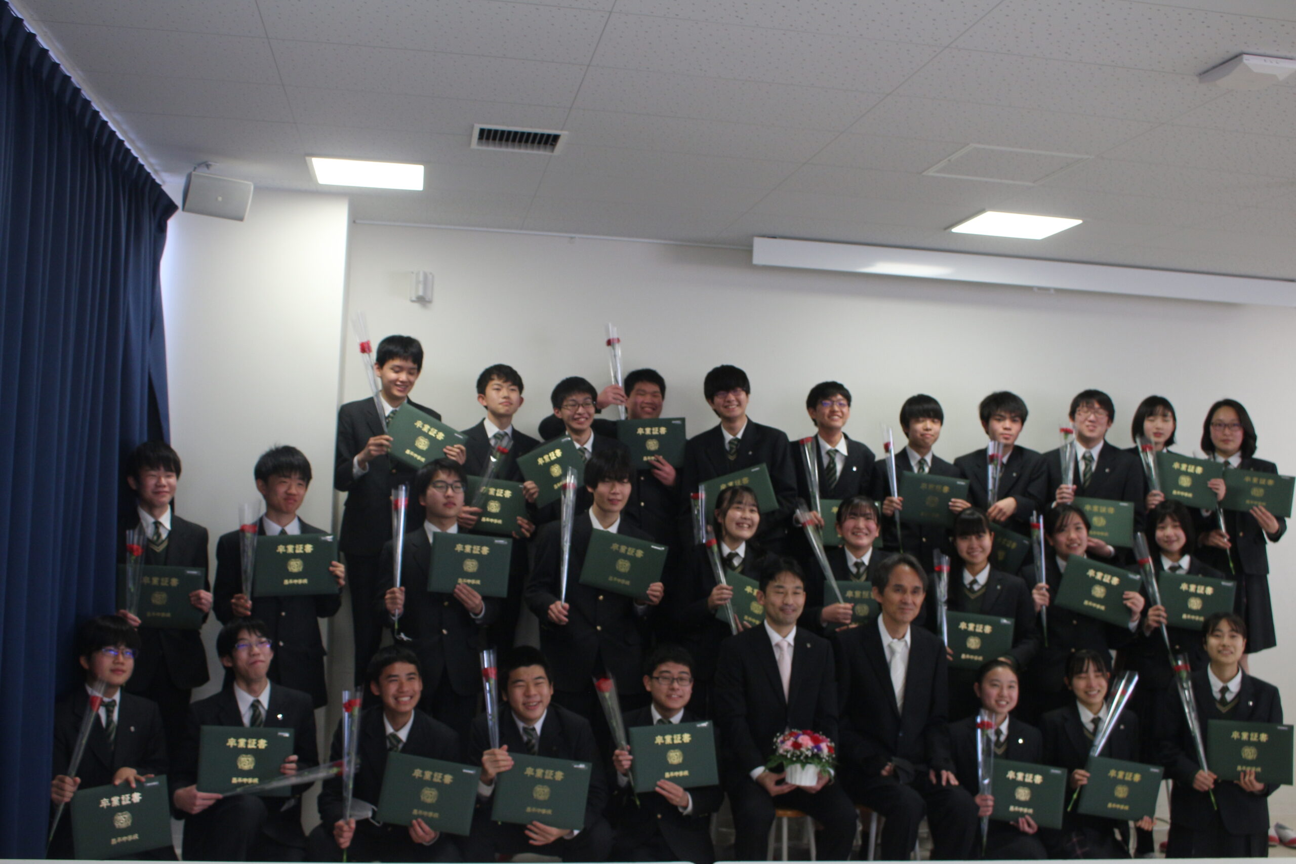 3月24日に中学校卒業式が執り行われ、118名が卒業証書を授与されました。新型コロナウイルス感染予防措置に伴い、人数を制限しての式となりましたが、厳粛かつ温かさある授与式となりました。また、各クラスでの最後のホームルームでは、苦楽を共にした友人や先生方との最後の時間を大切に過ごしました。高校に進学する生徒にとっては1つの折り返し地点ではありますが、節目となる中学校卒業式でした。教職員一同、彼らの門出を心よりお祝い申し上げます。