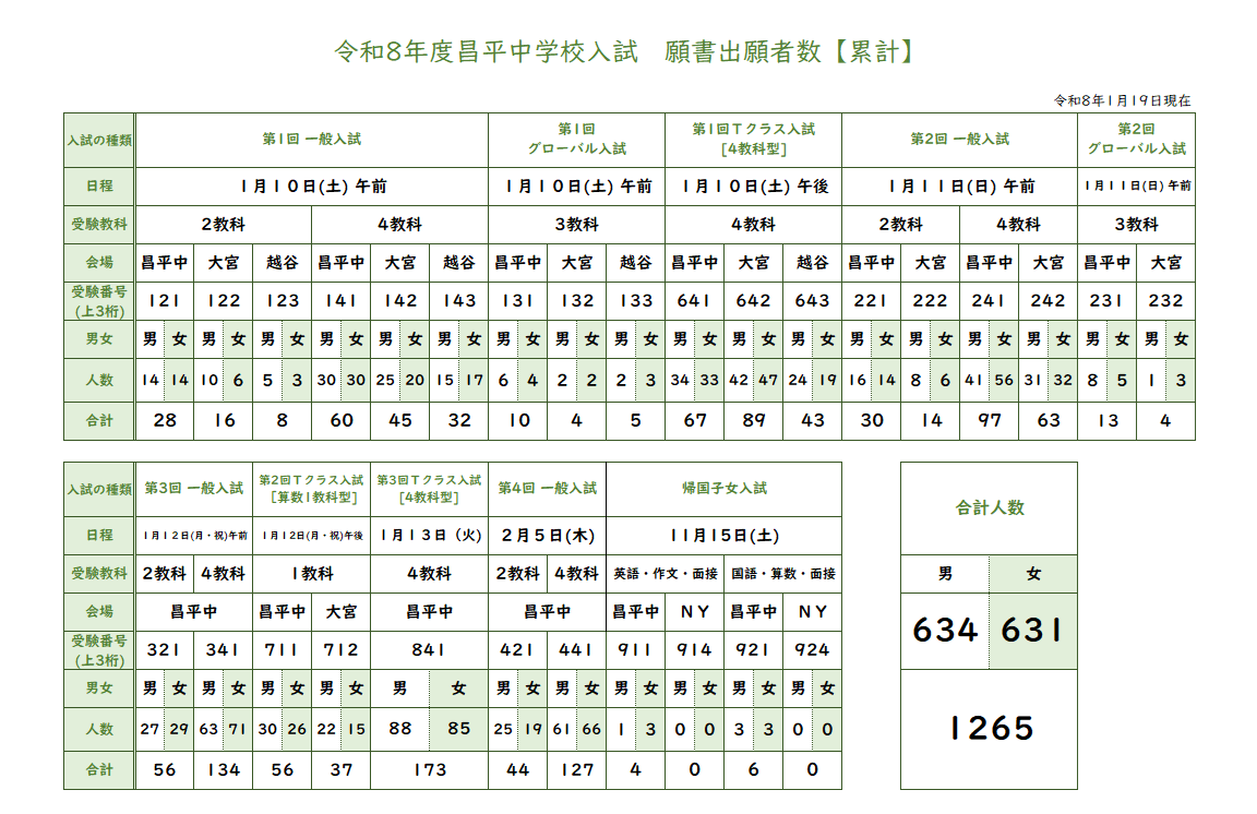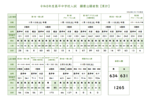 令和8年度 昌平中学校入学試験 出願状況のお知らせ