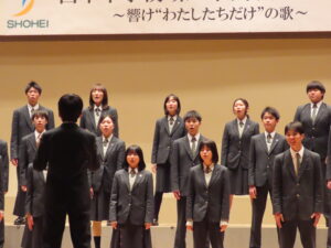 3学年、合計12クラスの合唱発表は第1部と第2部に分けて発表され、1部、2部の終了後に行われた