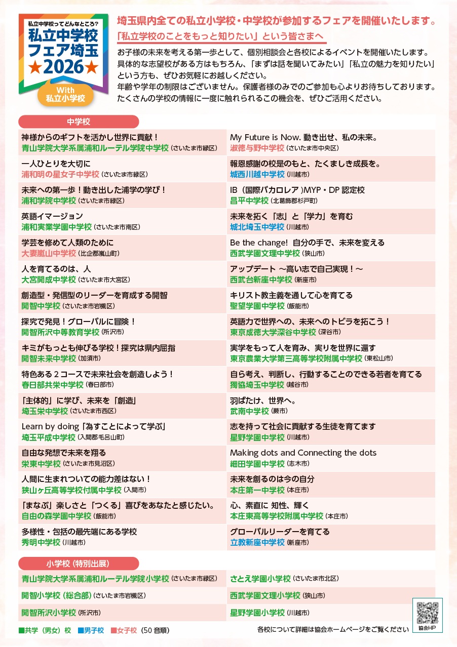 私立中学校フェア埼玉2026のご案内