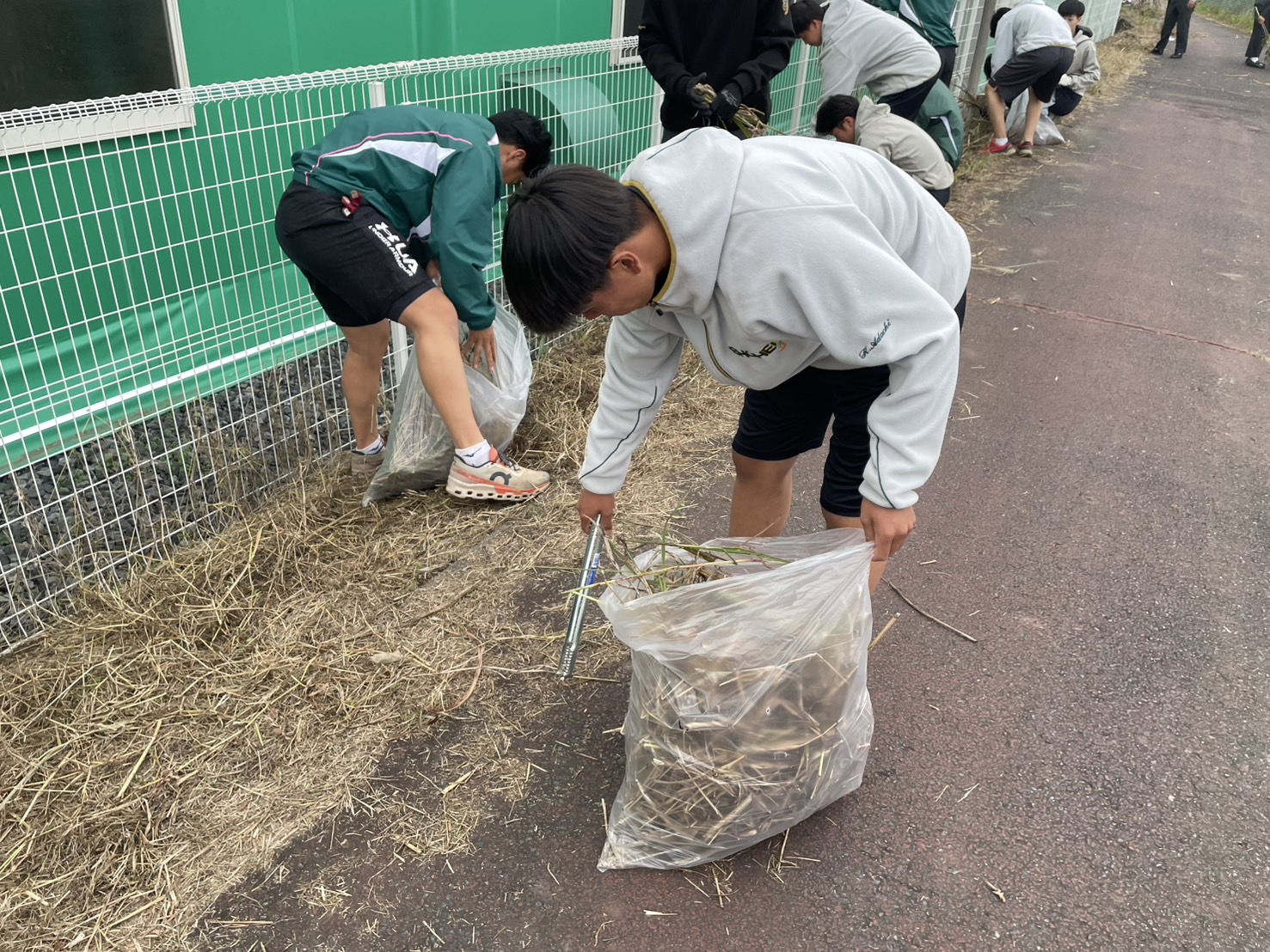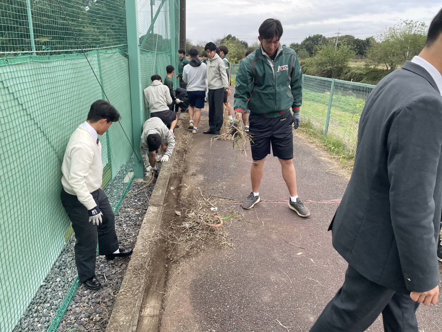 昨日の放課後、野球部の生徒たちが清掃活動に励んでいました。普段から定期的に学校周辺の清掃活動を行ってくれていますが、昨日は室内練習場周辺の草むしりをしてくれました。室内練習場はサイクリングロードに面しているため、自転車の安全運転のためにも道路のスペースを確保しておかなければなりません。練習場の中に居ては気付かない部分も、一歩外に出てみると違う視点で見えるものです。日頃から応援いただいている地元杉戸町への感謝の思いを込めて、きれいに雑草を取り除いてくれました。環境が整うことは、精神的な落ち着きにもつながります。凡事徹底。こうした身近な取り組みを徹底することこそが、大きなことを成し遂げる原動力になるはずです。野球部の皆さん、お疲れ様でした。
