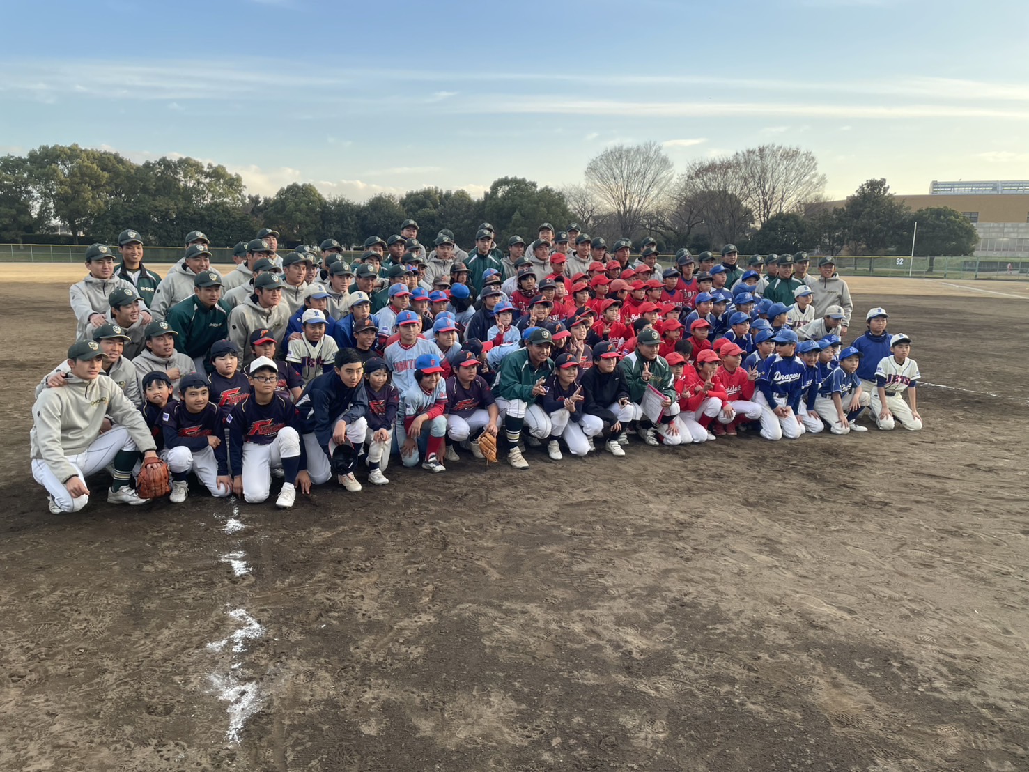 校外では野球部による小学生対象の野球教室が行われ、100名以上の小学生が参加してくれました。野球教室は今回が初めての開催となりますが、参加した小学生はもちろん、指導役となった本校の生徒たちも普段とは違う形で野球を楽しんでいました。大谷翔平選手が全国の小学校にグローブを寄贈したことは記憶に新しいところですが、このイベントが野球人気の復活にひと役買ってくれれば何よりです。参加したチームの監督さんにお話を聞くと、少子化の影響もあり各チームともに新メンバーの確保に苦心されているそうです。この中から未来の昌平高校野球部の選手が誕生してくれることを楽しみにしています。野球教室は明日も行われます。