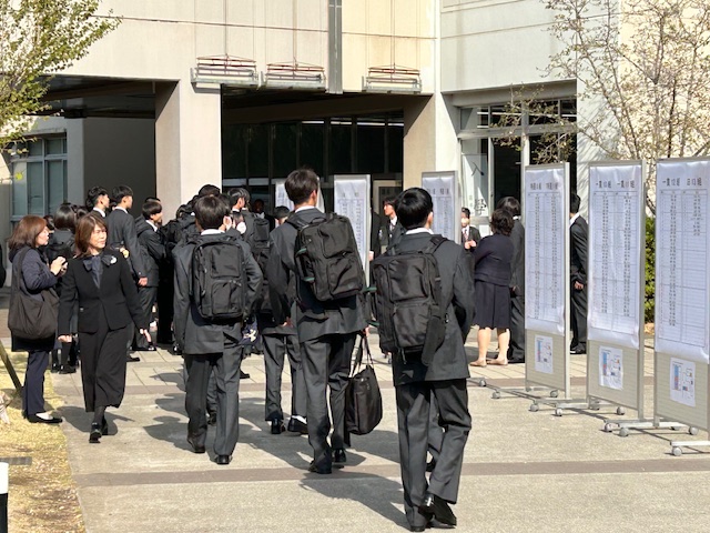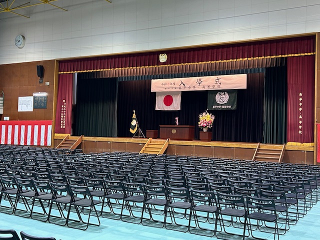 今日は待ちに待った入学式です。473名の新たな仲間を迎えようと、校門では満開の桜が咲き誇っていました。新入生が登校前の校舎を散歩していると、各教室ではクラス開きの準備が整っていました。穏やかな陽気の中、体育館での入学式が始まりました。多くの保護者の方にも出席いただき、厳かな中にも温かい思いと共に新入生を迎えることができました。式辞の中では、高校入学後に大切にして欲しい3つの「BE」について話をしました。