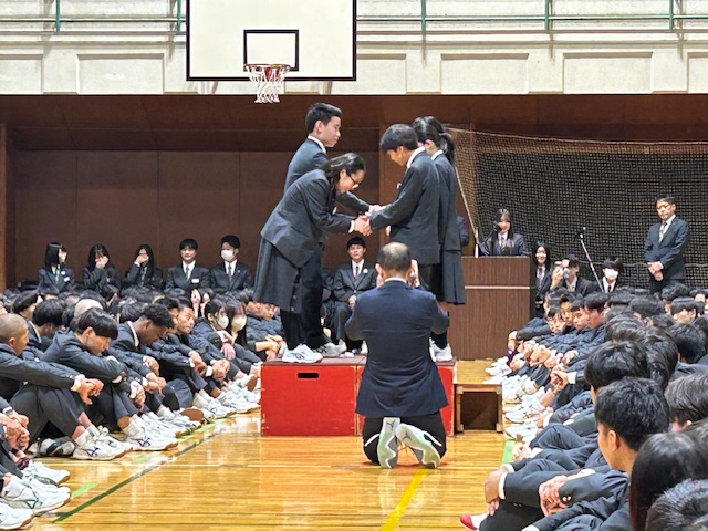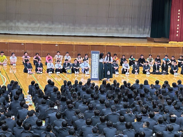 その後、3年生の学年集会に同席し、大学受験に向けた熱いエールを送らせてもらいました。進路部長からは最新の受験動向を話していただき、学年全体で受験生としての自覚を促す機会となりました。2年生の学年集会では、高校3年間の中心学年として、学習面はもちろん、部活動、学校行事に全力を尽くして欲しいと伝えました。秋には高校時代最大のイベントである選択制修学旅行も行われます。受験を翌年に控える中、思いっきり充実した一年間として欲しいと思います。午後に行われた部活動紹介では各クラブとも熱心に活動を紹介していました。最後にダンス部による昌平ヨサコイが披露されましたが、キレキレの踊りに一同見とれていました。