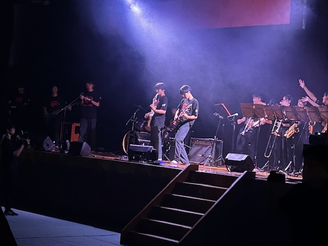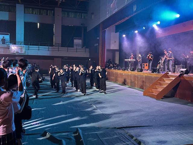 体育館では午後からオープニングイベントが行われました。昨日の綿密なリハーサルの成果もあり、準備万端で始まりを迎えました。改めて放送委員の皆さんの尽力には頭が下がります。軽音楽部による演奏に熱狂し、ピアノのソロ演奏に魅了され、圧巻のダンスパフォーマンスに思わず見とれてしまいました。3年生有志によるダンスには、年甲斐もなく私も借り出されてしまいました(苦笑)チアリーディング部の演技も少人数ながら切れ味鋭く、パフォーマンスのラストは書道部が締めてくれました。どの演技も普段の練習の成果を思う存分に発揮し、体育館に詰めかけた大勢の生徒たちを大いに盛り上げてくれました。パフォーマンスを披露してくれた生徒の皆さん、そしてイベントを支えてくれた皆さん、大変お疲れ様でした。