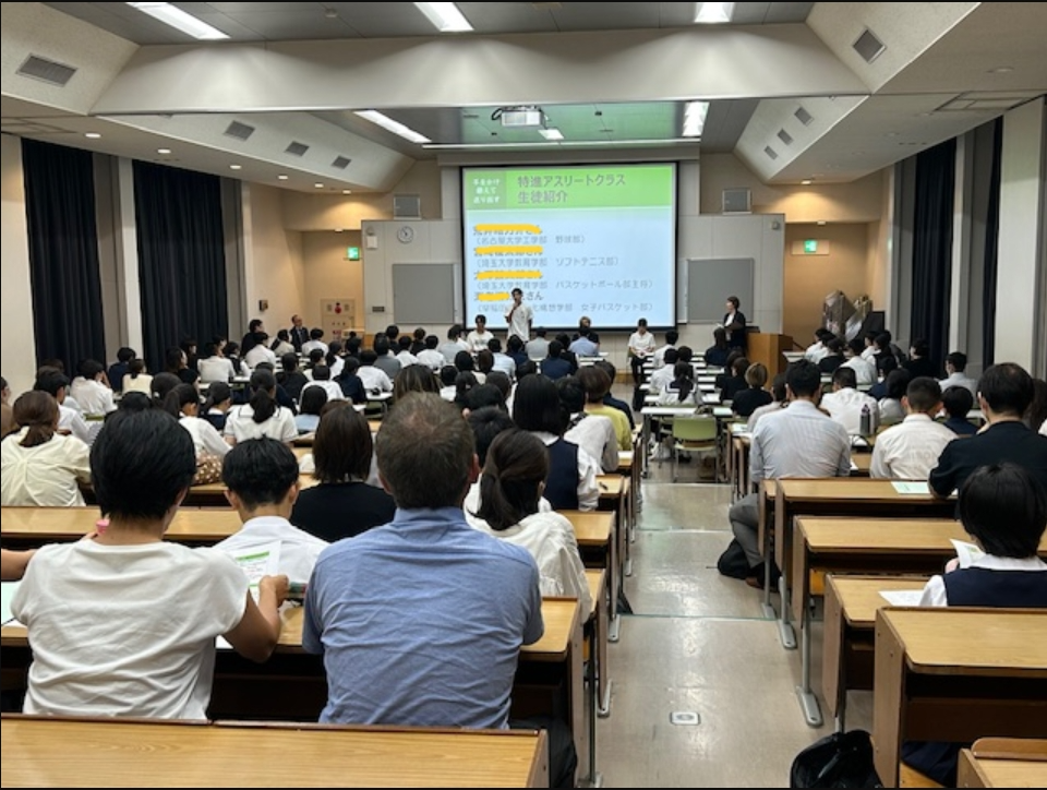 高校受験を控える中学三年生にとっては、第一志望校の決定に頭を悩ませているところでしょうか。本校でも学校説明会をはじめとする各種説明会が続いています。昨日の「特進アスリートクラス説明会」に続いて、今日は「T特選クラス説明会」が行われました。「特進アスリートクラス」は、難関大学合格をめざしながらスポーツでの全国大会出場を目標とするクラスです。正に本校が目標に掲げる「文武両道」を高いレベルで実践するクラスです。
