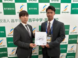そして今日、櫻井君をドラフト指名した千葉ロッテマリーンズのスカウトの方が、ご挨拶に来校されました。