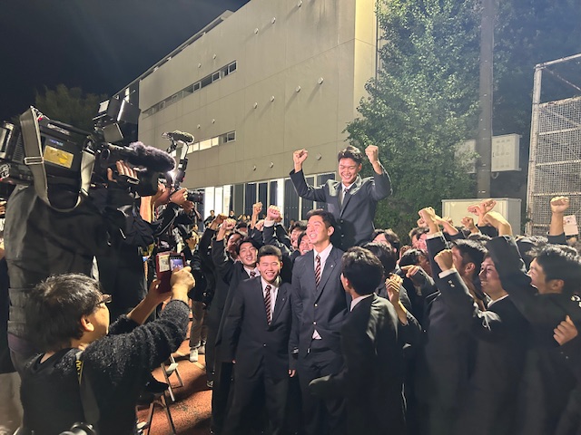 まずは、何よりのビッグニュースは野球部主将だった櫻井ユウヤ君のプロ野球ドラフト指名です。