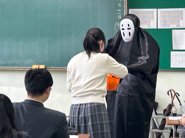 本校でも、ネイティブの先生方が仮装姿で出勤したり、プレゼントを配った利する姿が毎年恒例になっています。