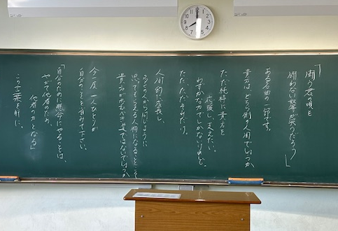 昨日の朝、3年生のある教室を覗いたところ、黒板にこのようなメッセージが書かれていました。