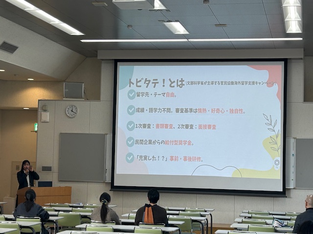 その中のひとつである「トビタテ!留学JAPAN」に、今年挑戦した二人の3年生の報告会が今日行われました。