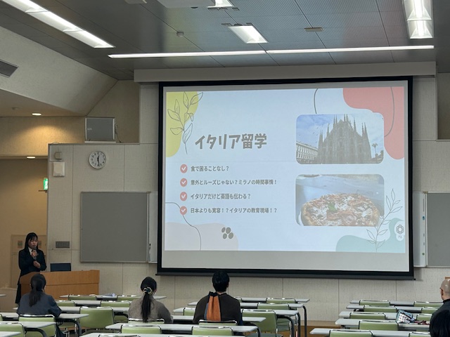 最初に発表したYさんは、イタリアへインクルーシブ教育を学ぶために留学しました。