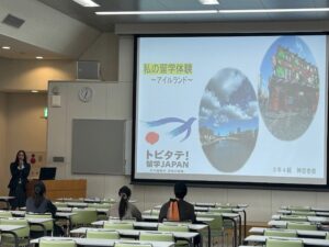 留学のテーマを決めるまでの経緯も話してくれましたが、Kさんの留学テーマは「アイルランドの伝統音楽と観光の関係を学び、にほんの観光業を活発にしたい!」というものでした。