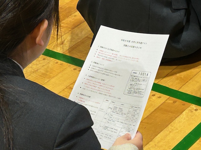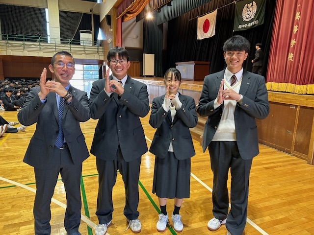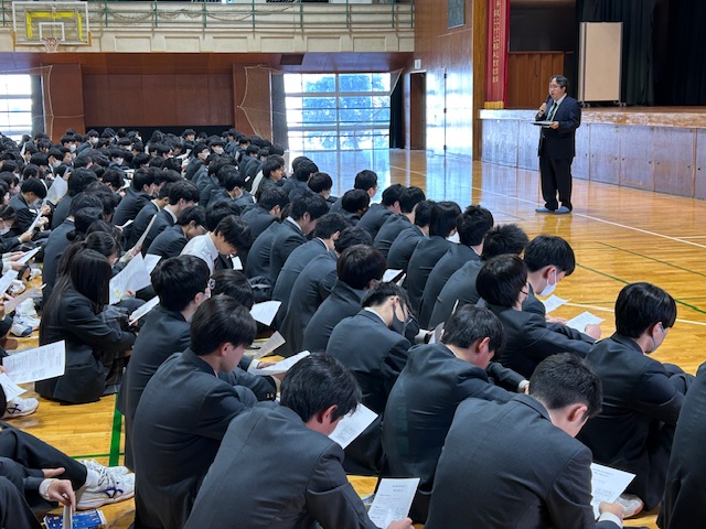 始業式、報告会が終わると、来週に行われる共通テストの激励会が行われました。