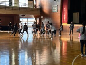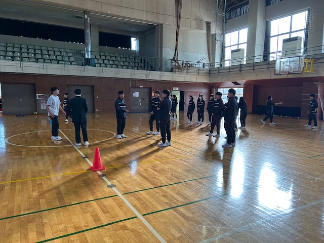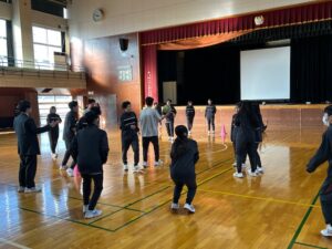 教室の様子を見ようと校内を散歩していると、体育館の方からにぎやかな声が聞こえてきました。