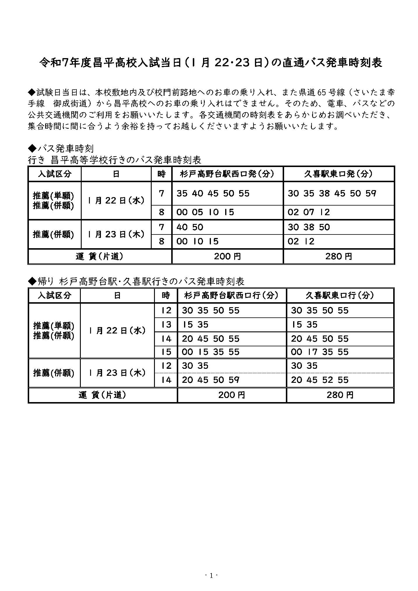 【連絡】1月22・23日昌平高校推薦入試送迎バスダイヤのご案内