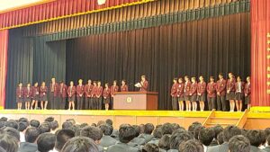 全校生徒が登校する新年度最初の日。中高合同の対面式が行われ、新入生と在校生が一堂...