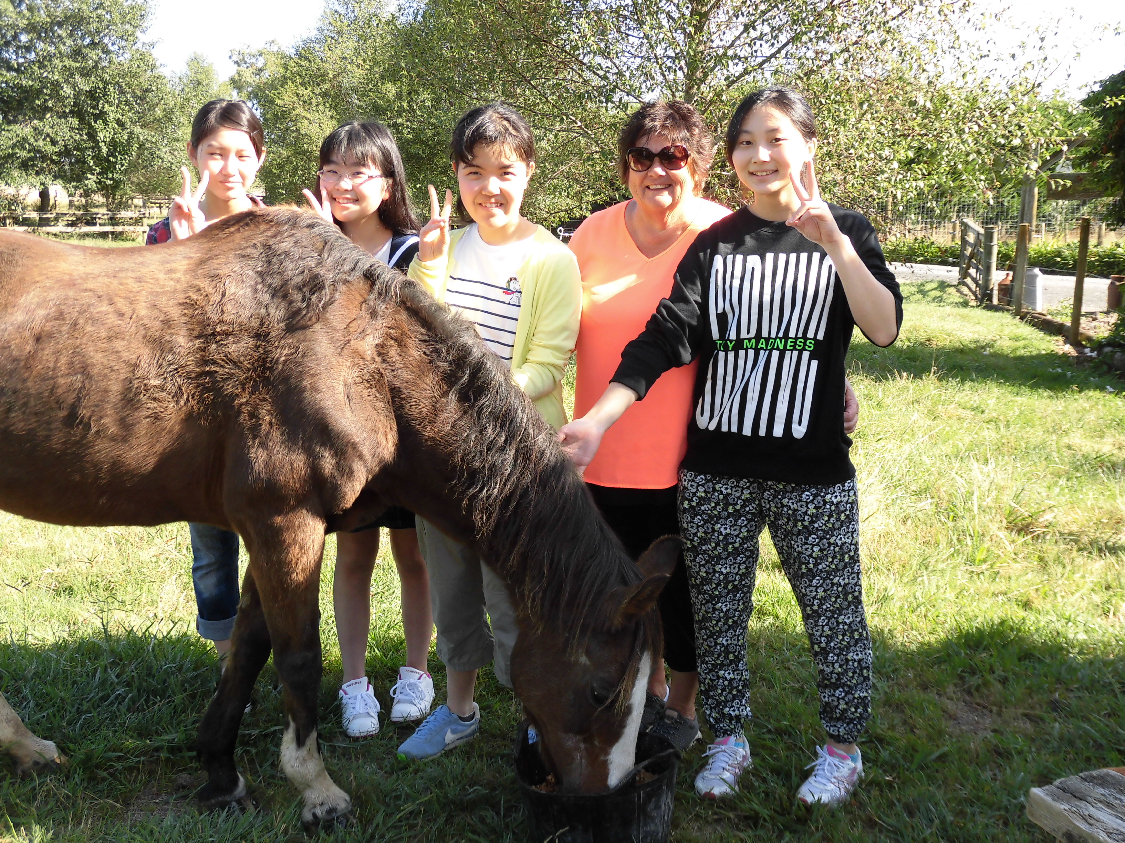 朝夕少々肌寒い気候ですが、日中は紫外線が強くとても暑く感じる毎日です。午前中は今日もファームステイ先のお宅に訪問し生徒と対面しました。アルパカへ楽しそうに餌をあげたり、ポニーと触れ合ったりと都会では味わえないファーム暮らしを満喫している様子でした。午後はハミルトン中心部にある世界の庭園・ハミルトンガーデンで男女それぞれのチームと出会うことが出来ました。シャイな男子チームも一生懸命会話をしようと頑張っているとのことでした。女子のチームは美しく咲く花々に感激し沢山の写真を撮り、楽しそうに見学していました。明日の天候は雨模様とのことなので、これから生徒たちに出会える場所を検討します。
