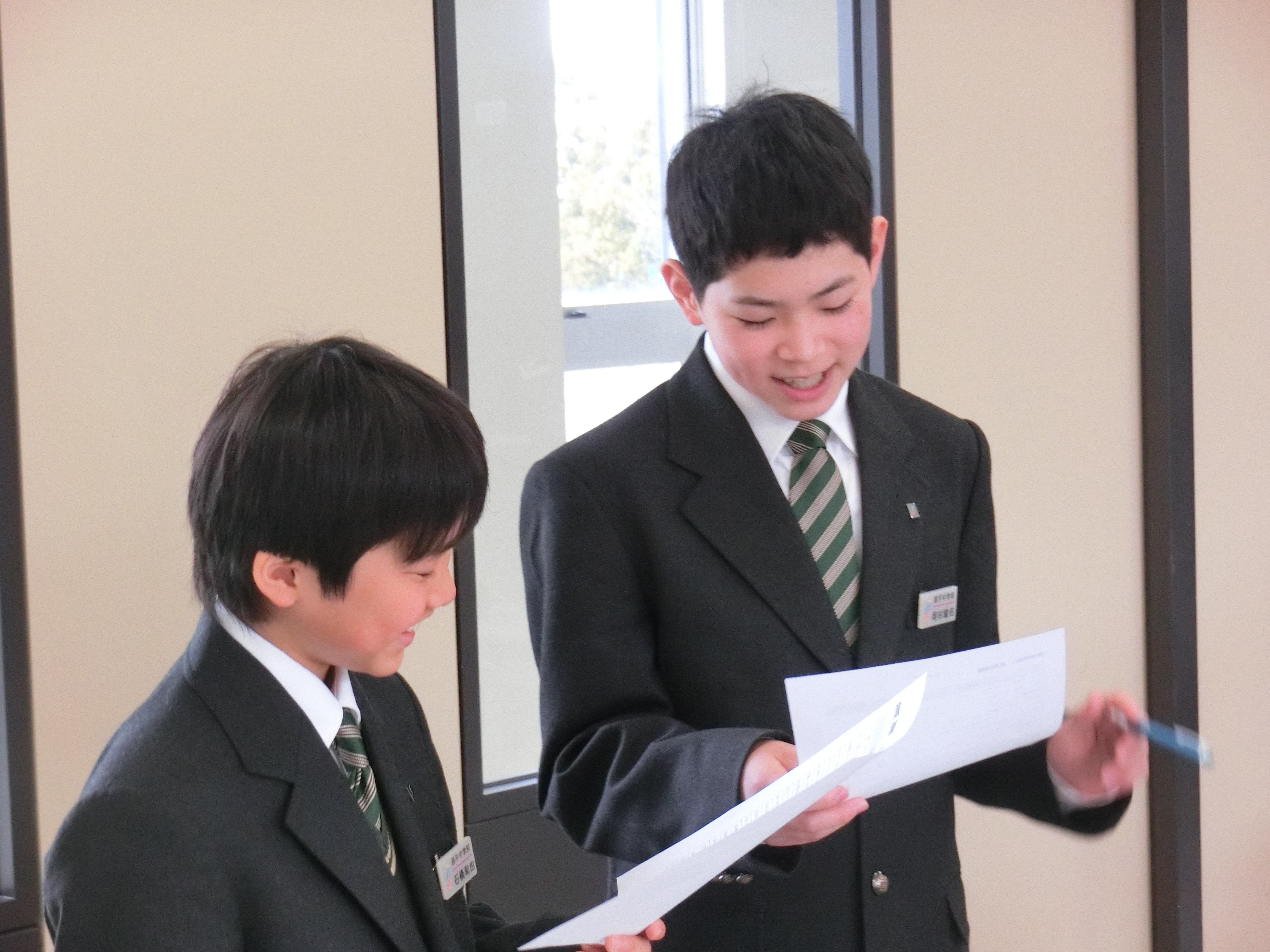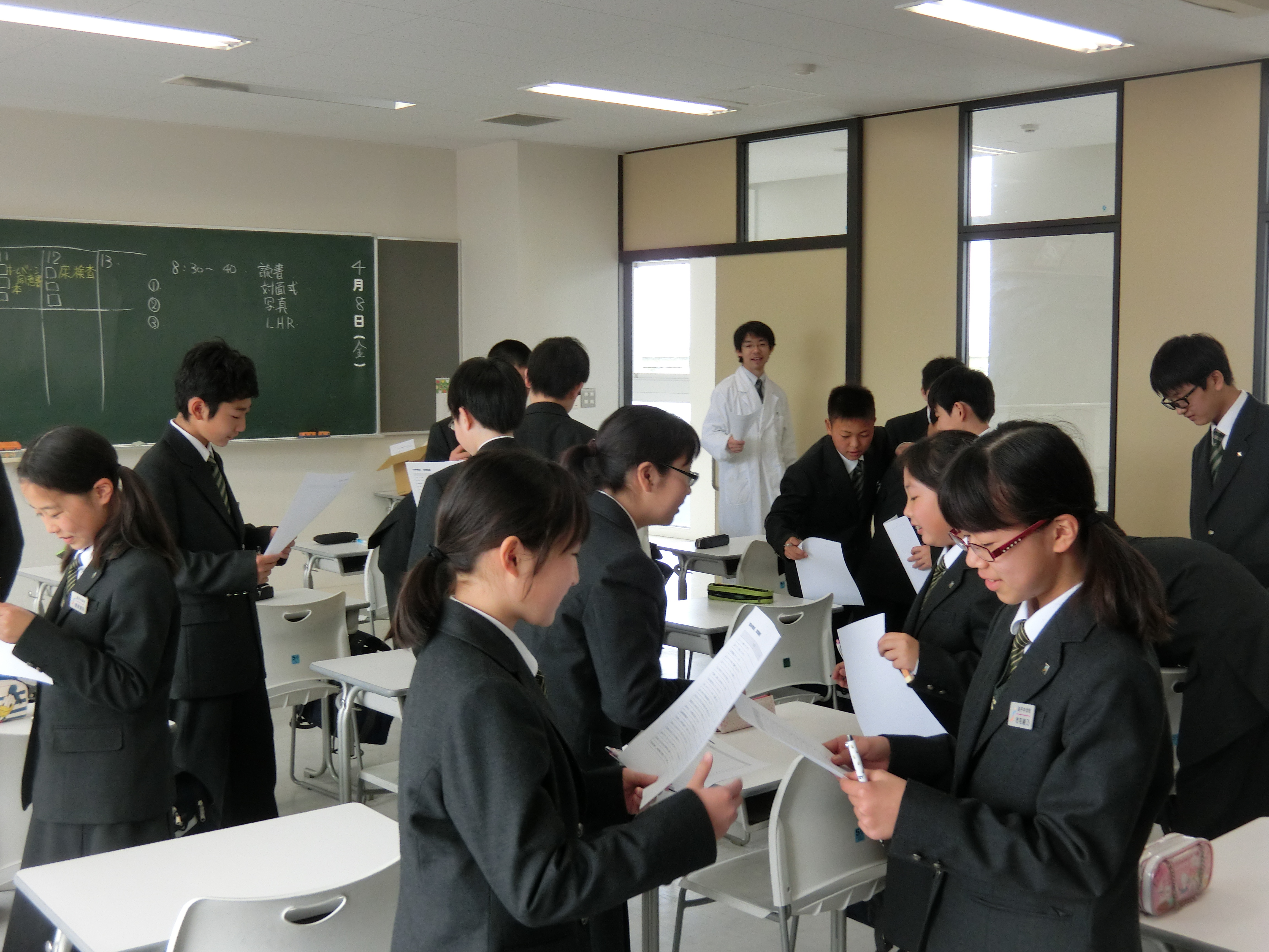 本日、対面式が行われ、在校生、新入生が初の顔合わせをしました。中高それぞれの代表者が握手をかわし、歓迎の言葉を述べました。また、1年生のLHRでは、「探偵ごっこ」という友人同士で質問をし、親近感を深めるアクティビティを行いました。昨日とは違い、笑い声がたくさん聞こえて、徐々に打ち解けている様子でした。来週からは授業も始まります。早く学校生活に慣れて、たくさんの友人、先輩との交流を深めていくことを期待しています。