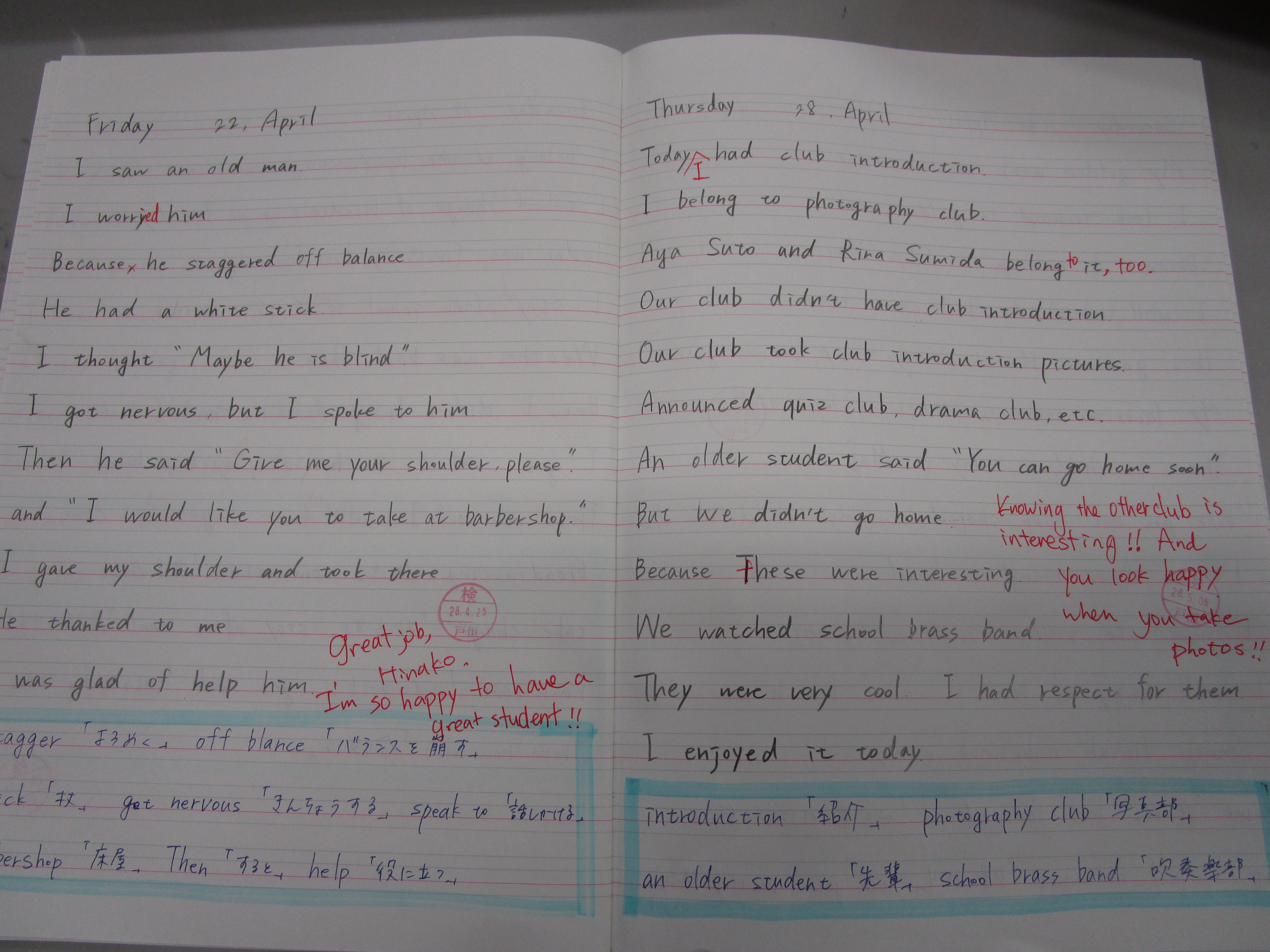 2年生は昨年度後半からMy Diaryノートを1冊ずつ用意し、英語で日記をつけています。今回はその日記をスピーチ用に書き直し、春休みについてのスピーチを行ないました。常に受け手を意識した学習活動しているのでスピーチも上手になりました。英語で日記をつけているので、英語での会話もスムーズで成長を感じられるプレゼンテーションになりました。