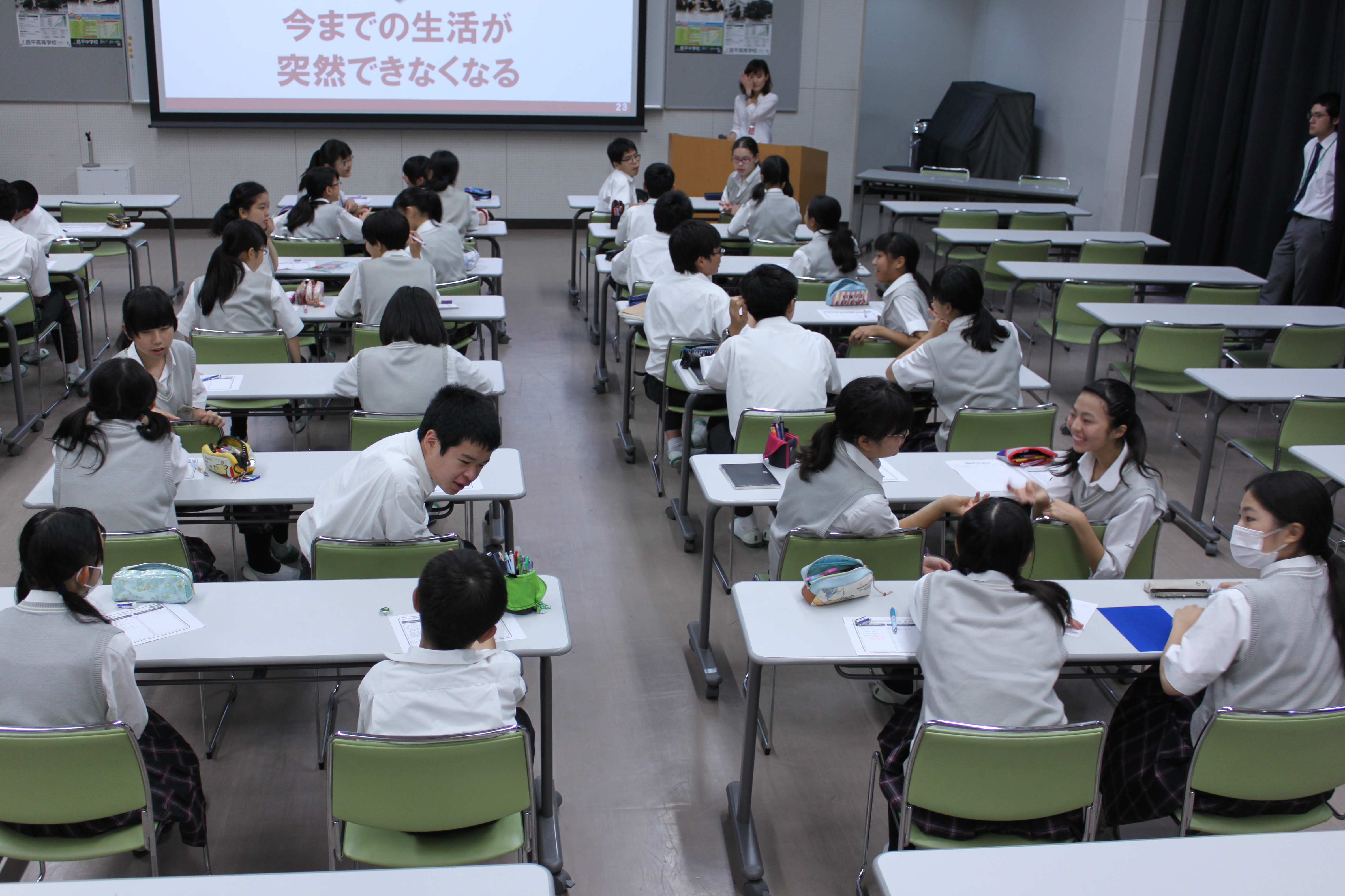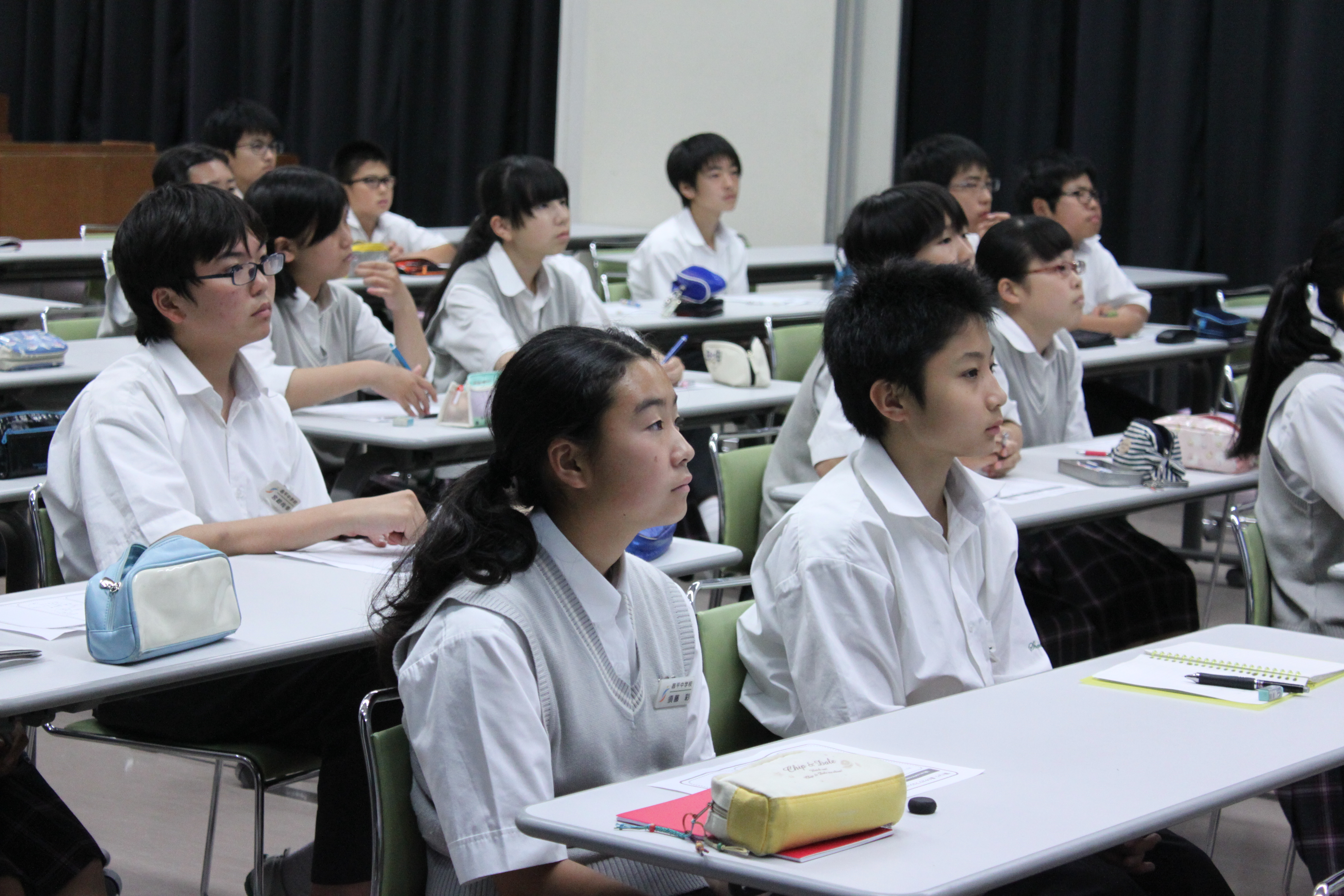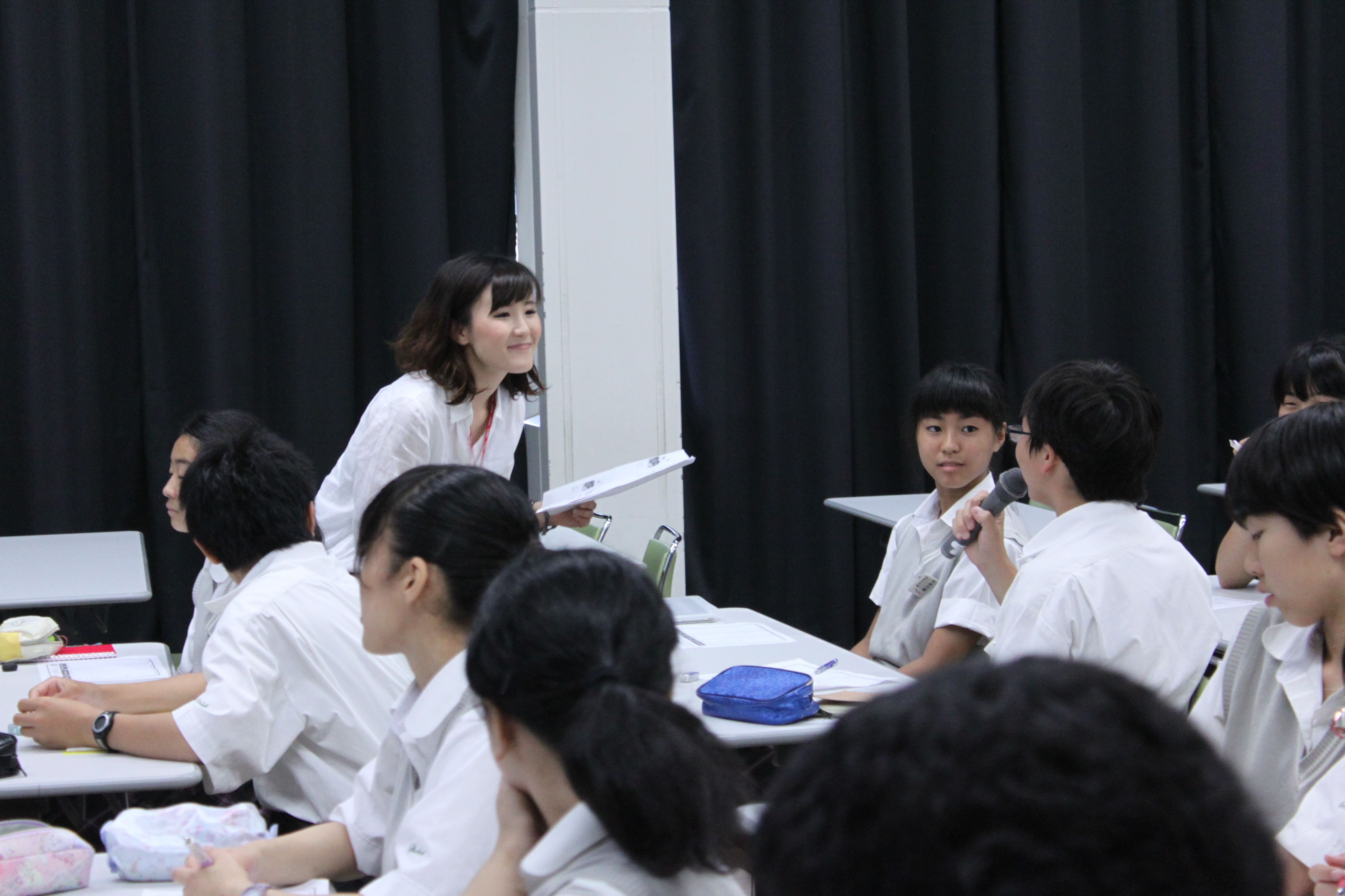 中学2年生はプロジェクト学習の一環として、”届けよう、服のチカラ”プロジェクトに参加し、途上国に服を届ける活動を行います。本日はユニクロの酒井様、古川様が生徒に対して出張授業をして下さり、プロジェクトの意義、やり方について学びました。これからどのように服を集めるか生徒たちは考えます。