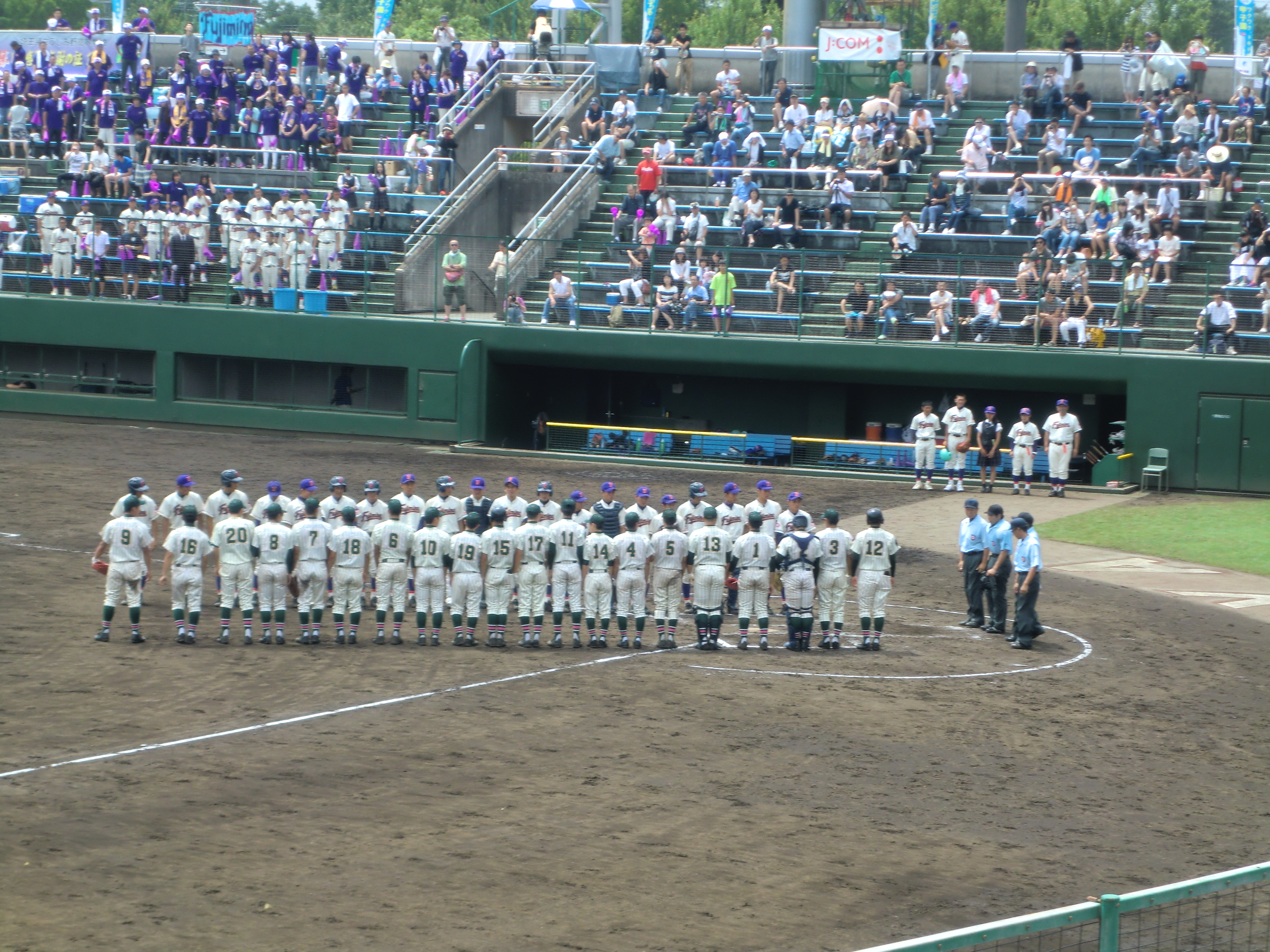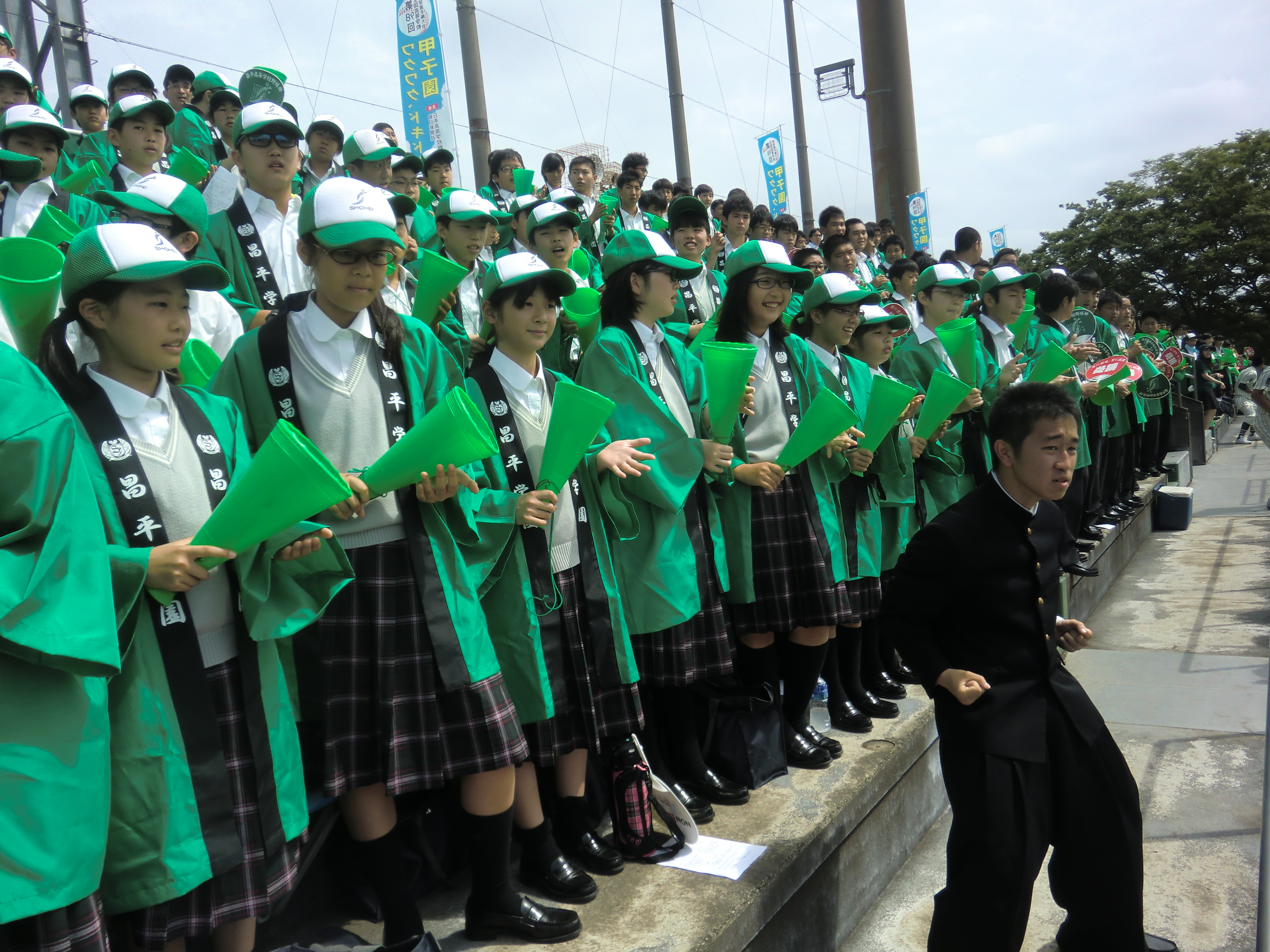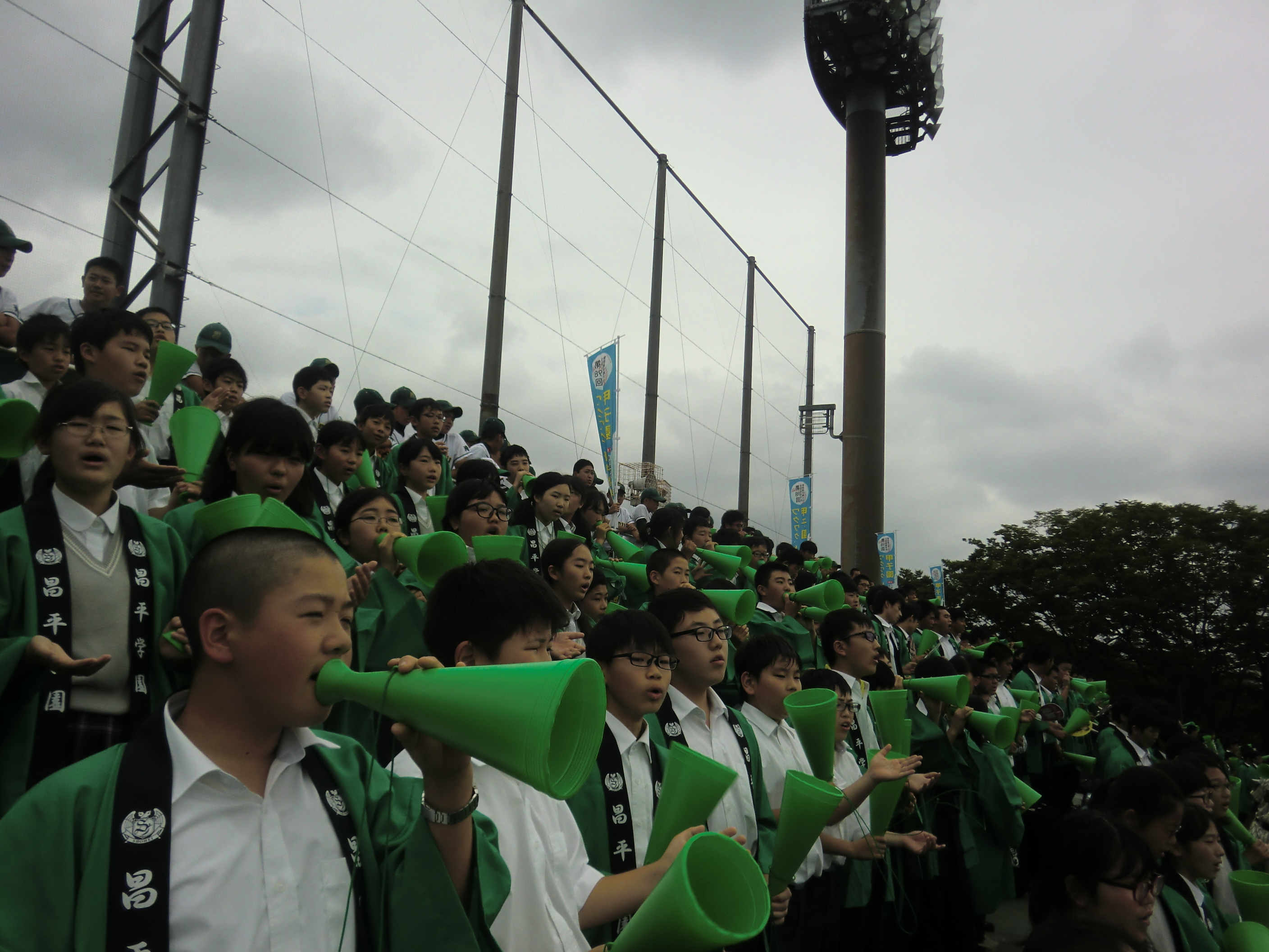 本日、中学1年生は学年全員で全国高校野球埼玉大会3回戦の応援に行きました。初めての野球応援でしたが中高一貫2期生(現高校3年生)が団長を務める応援団の合図に合わせて一生懸命応援しました。試合は1対0で接戦の末勝利し、暑い中の応援が大変盛り上がりました。