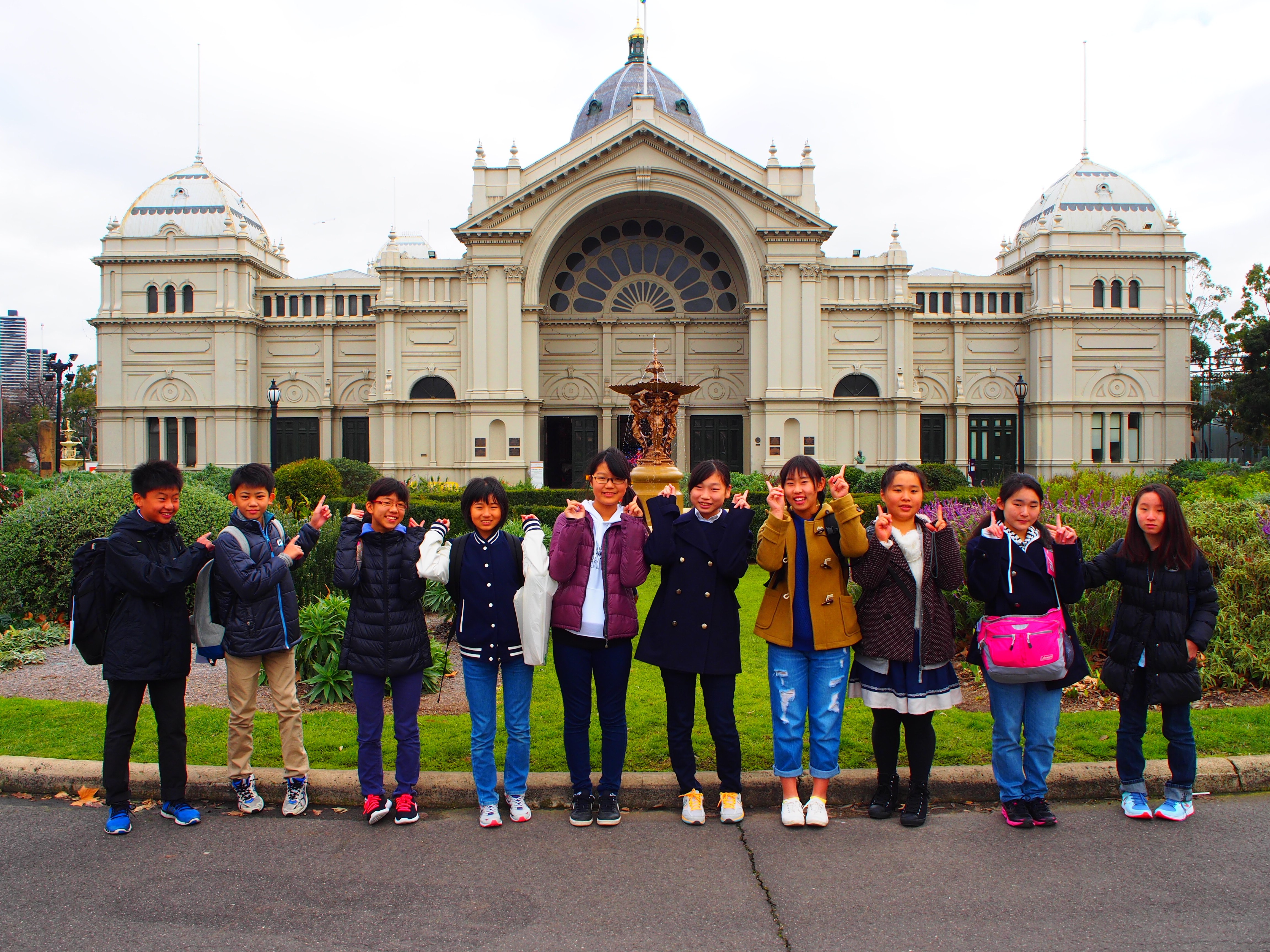 海外語学研修2日目の本日はメルボルンの散策を行いました。昨日は深夜の到着になりましたが、朝食もしっかり食べて全員で元気に街を散策しました。ビクトリアマーケットで買い物を楽しんだ後は、世界遺産の王立展示館やセント・パトリック大聖堂などを見学しました。昼食には各自フードコートで好きなものを注文したり、市内を無料で走るトラム(路面電車)に乗ったり、地図を片手に街を歩いたりと、大冒険の1日でした。へとへとになって帰ってきた生徒たちを待ち受けていたのは想像を超える大きさのステーキ。最初は圧倒されていましたが、美味しくいただきエネルギーも満タンに。明日はいよいよスコッツスクールに向かい、ホストファミリーと対面します。今日はゆっくり休んで明日の素敵な出会いに備えます。