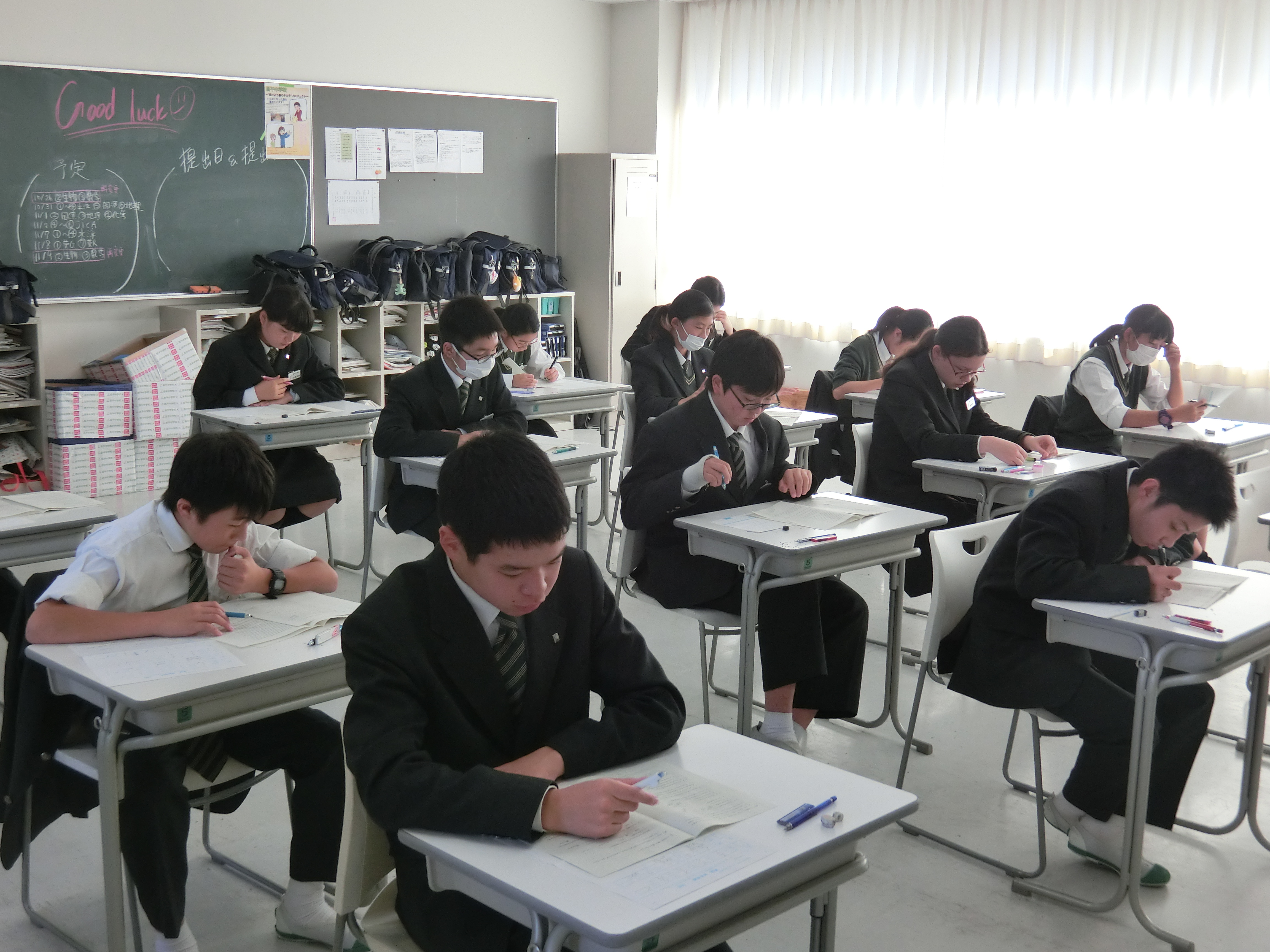 本日は1~4限に第2回 学力推移調査が行われました。模試は自分の日々の勉強と実力を測るものでもありますが、先週から学校でも対策を行ってきました。学校の考査とは異なるような難しい問題も多く、苦戦する生徒や手ごたえを感じた生徒もいたようです。受けたままにせず、しっかりとやり直しをし、ステップアップしてくれることを望みます。