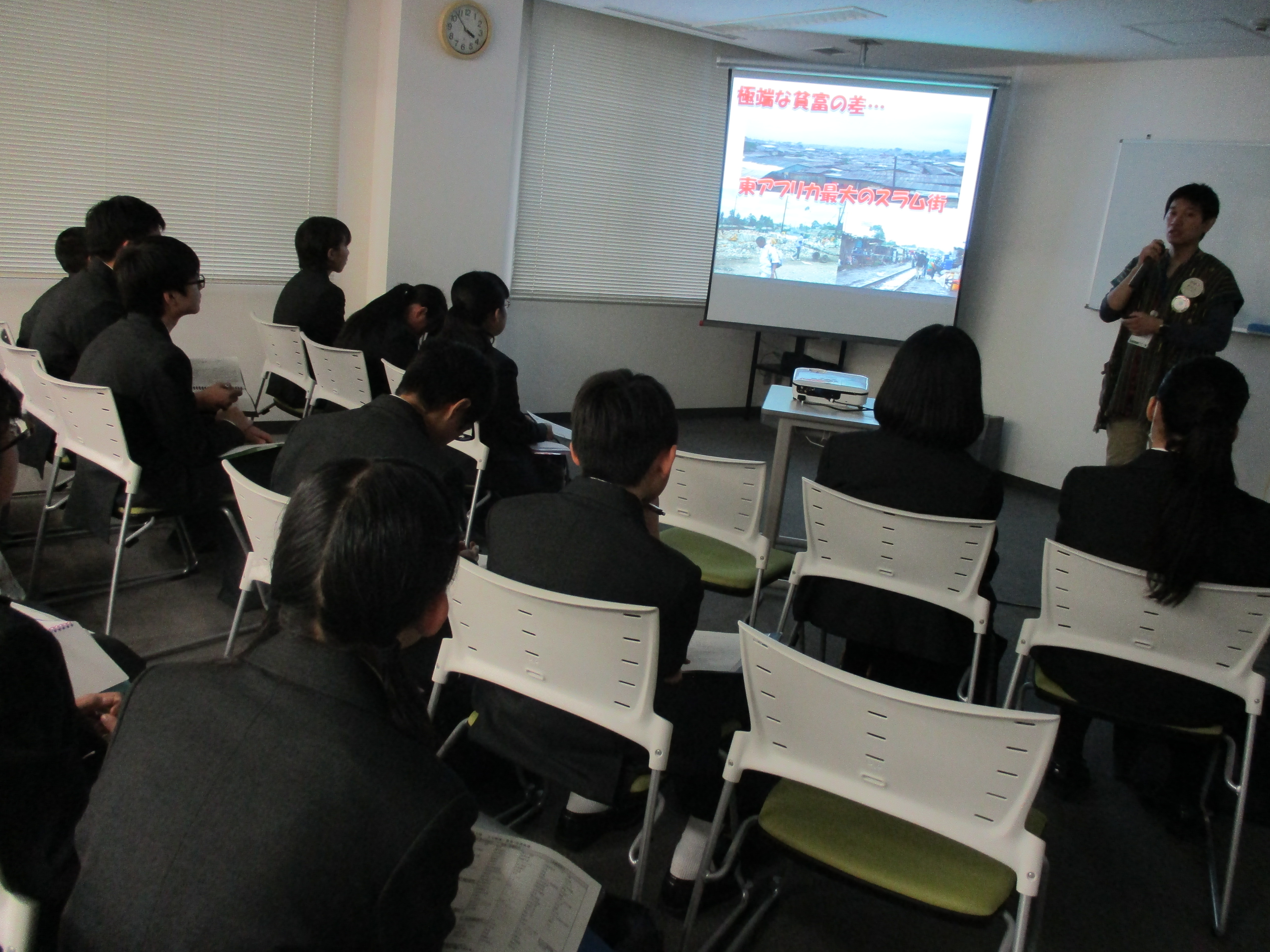2グループに分かれ、1グループはメキシコ、もう1グループはケニアで青年海外協力隊として活躍された方の話を聞きました。現地には現地の文化があり、日本の常識が必ずしも世界の常識ではないというグローバル社会で生きるために大切なことを学びました。