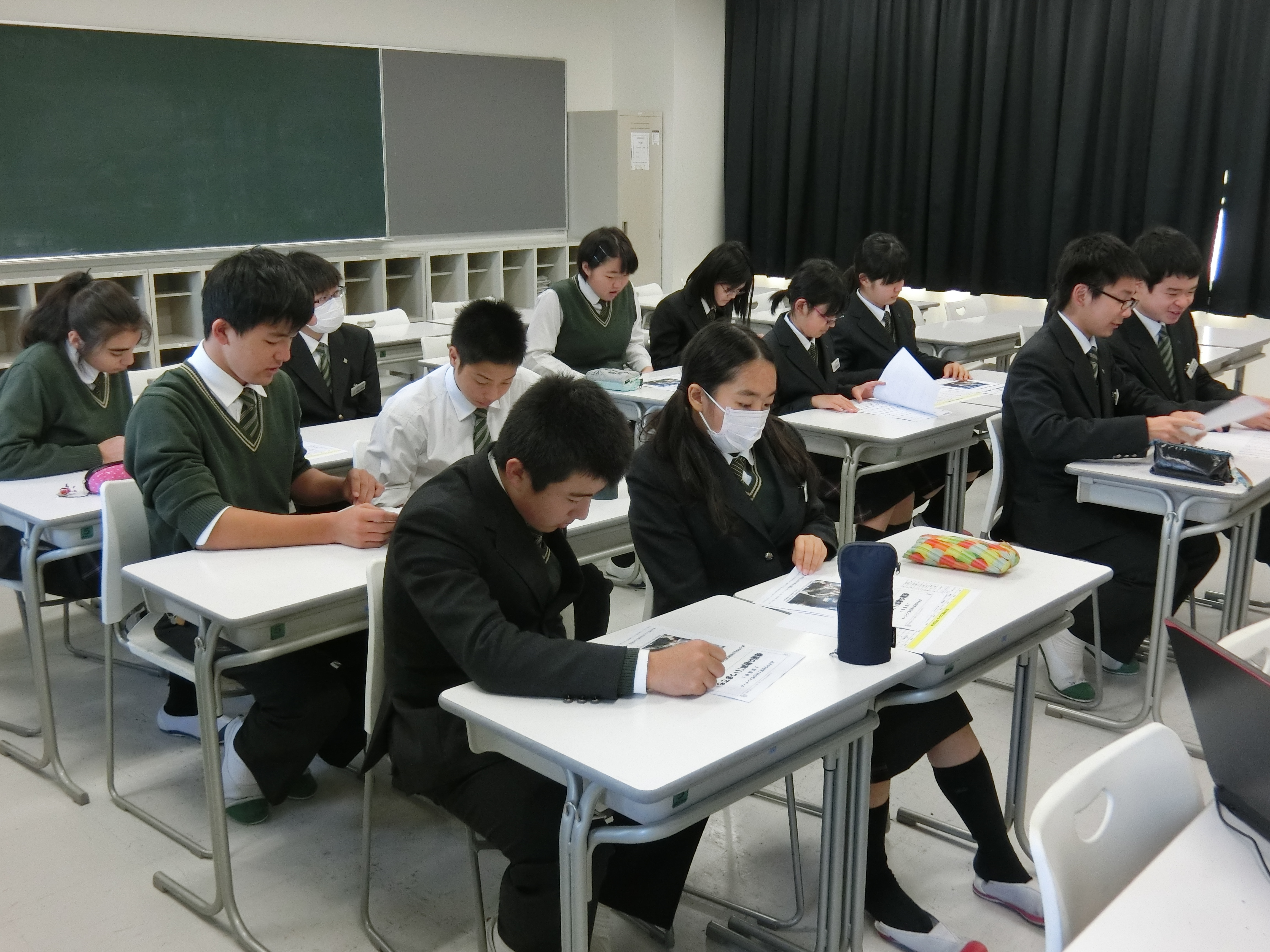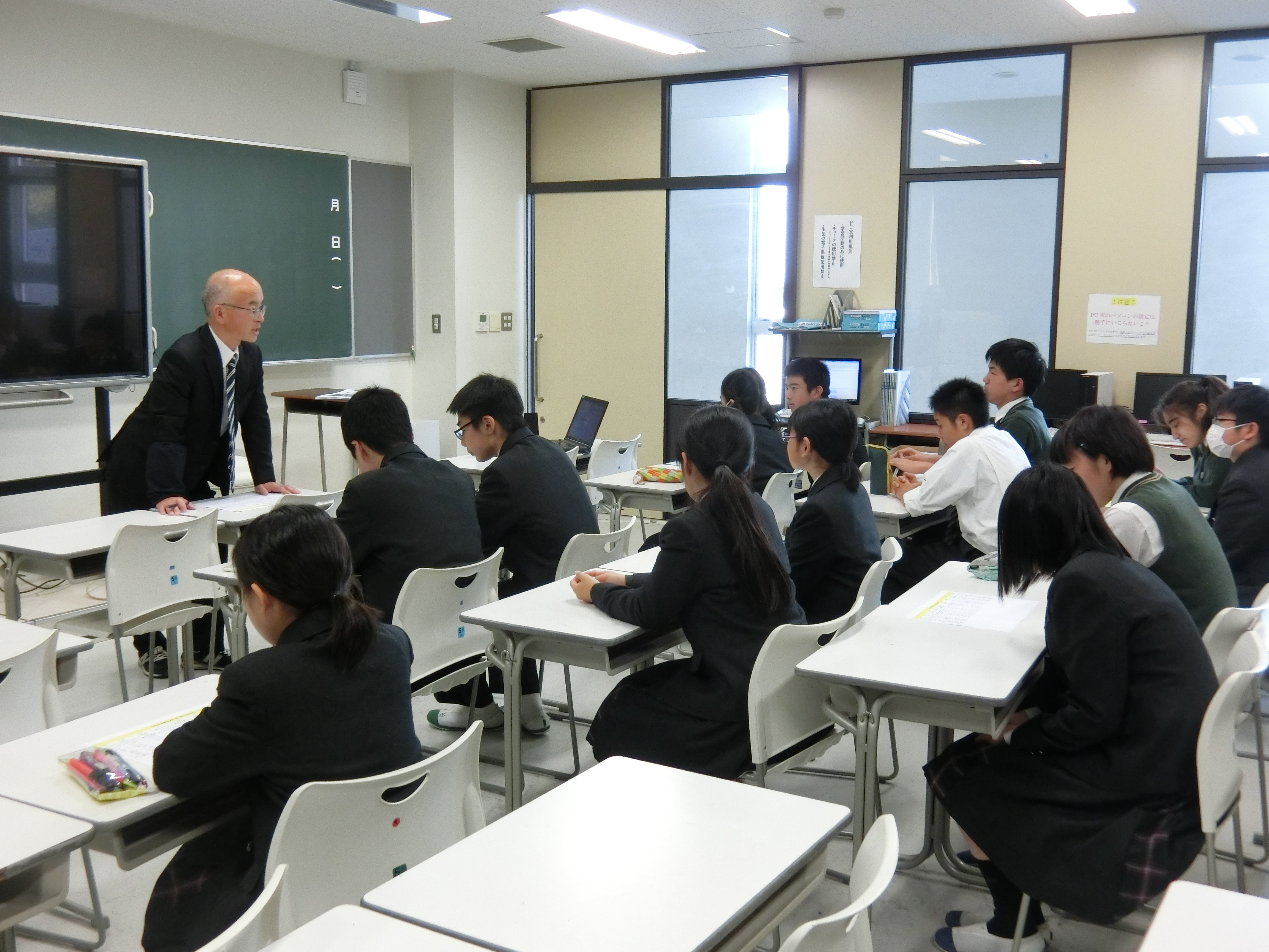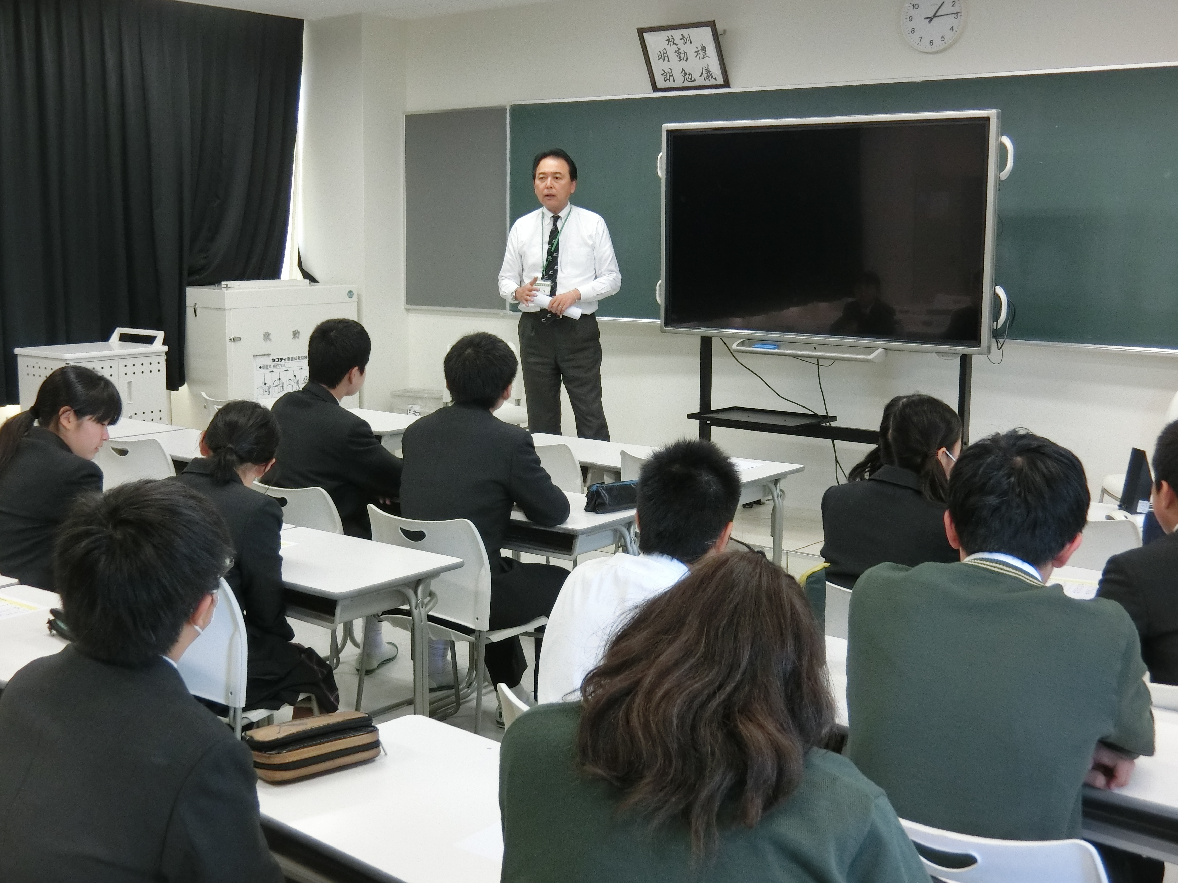 2月4日に春日部市民文化会館にて行われる合唱コンクールに向け、本日は第一回合唱コンクール実行委員会がありました。その中で音楽科の川崎先生から課題曲の発表がありました。御嶽山噴火時に捜索活動をした自衛隊に地元小中学生が送った「いつまでも」という曲で、故郷への思いや感謝がこめられた歌です。また、本間教頭からは、今年度新たに行われる行事であり、よき伝統作りのためにもぜひクラス一丸となってがんばってほしいとエールが送られました。クラスで一生懸命練習をしているので楽しみです。