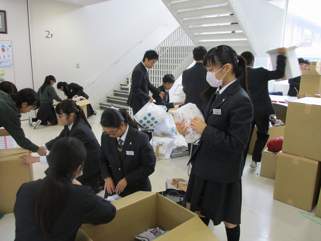 中学2年生はプロジェクト学習の一環として、ユニクロ”届けよう、服のチカラ”プロジェクトに参加し、途上国の子どもたちに服を届ける活動を行っています。11月いっぱいで今年度の活動が終了し、段ボール29箱分の服を回収することができました。校内だけでなく、近隣の小学校や幼稚園、保育園の方々、学校説明会に来て下さった方々にも協力をしていただきました。みなさまありがとうございました。
