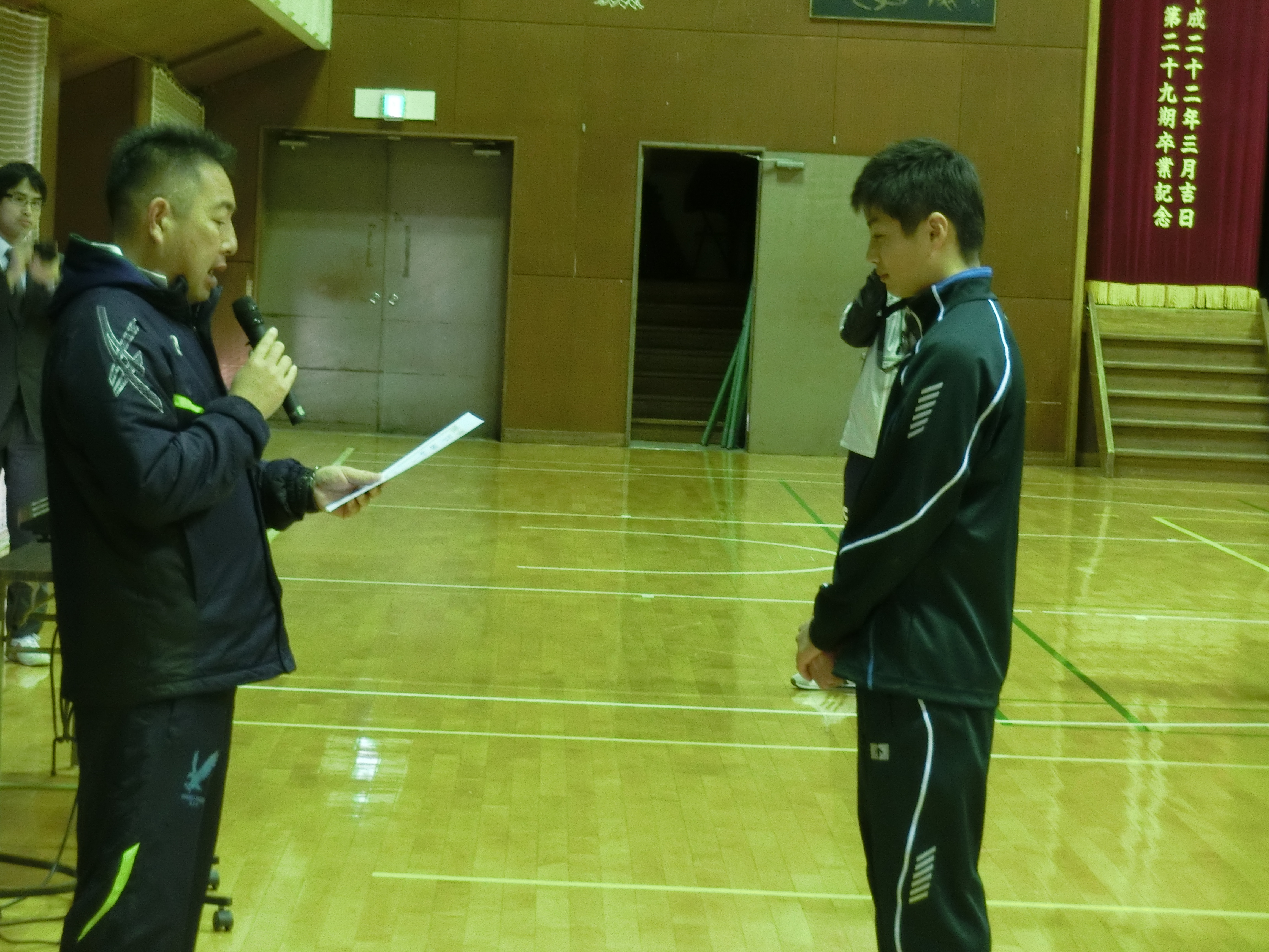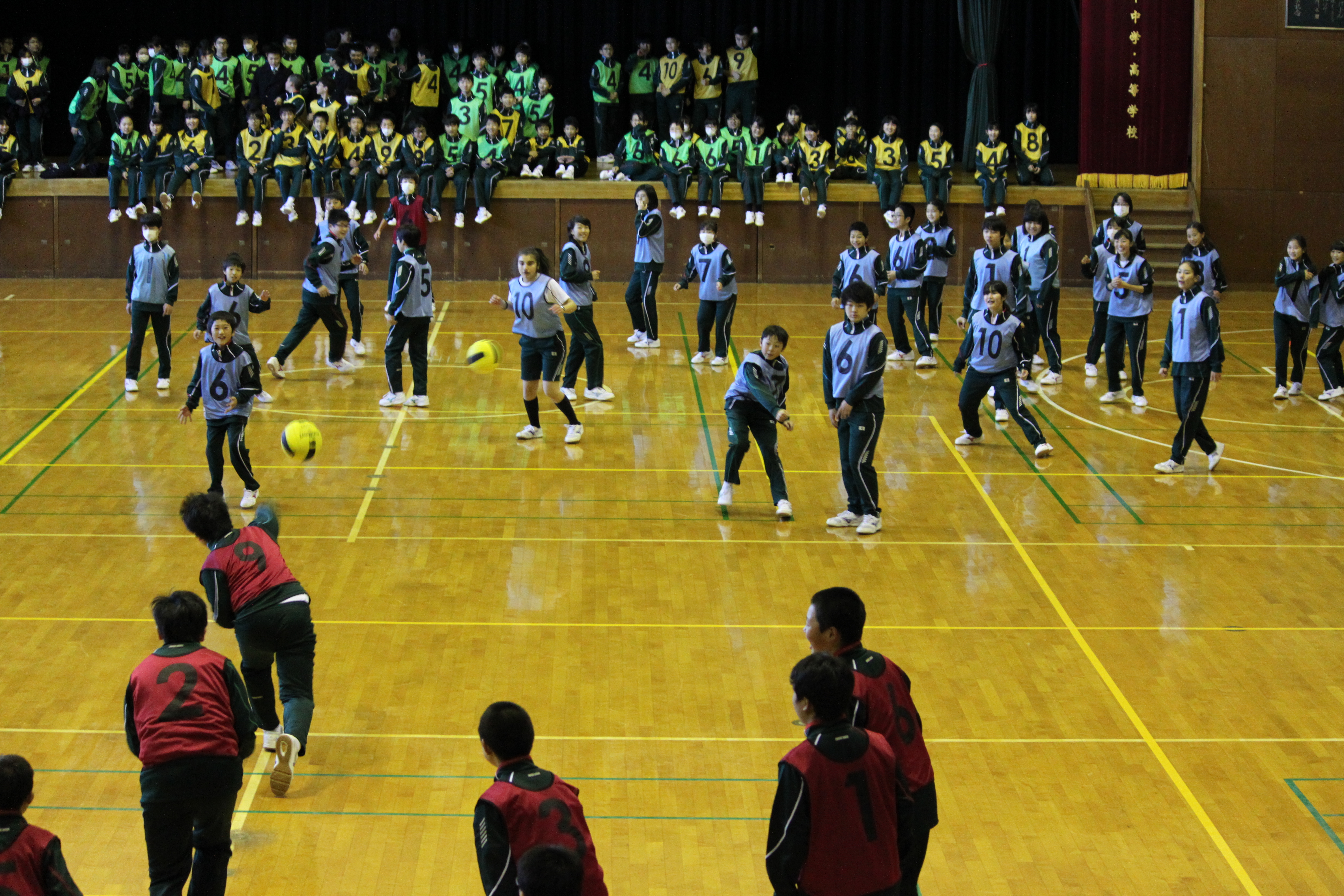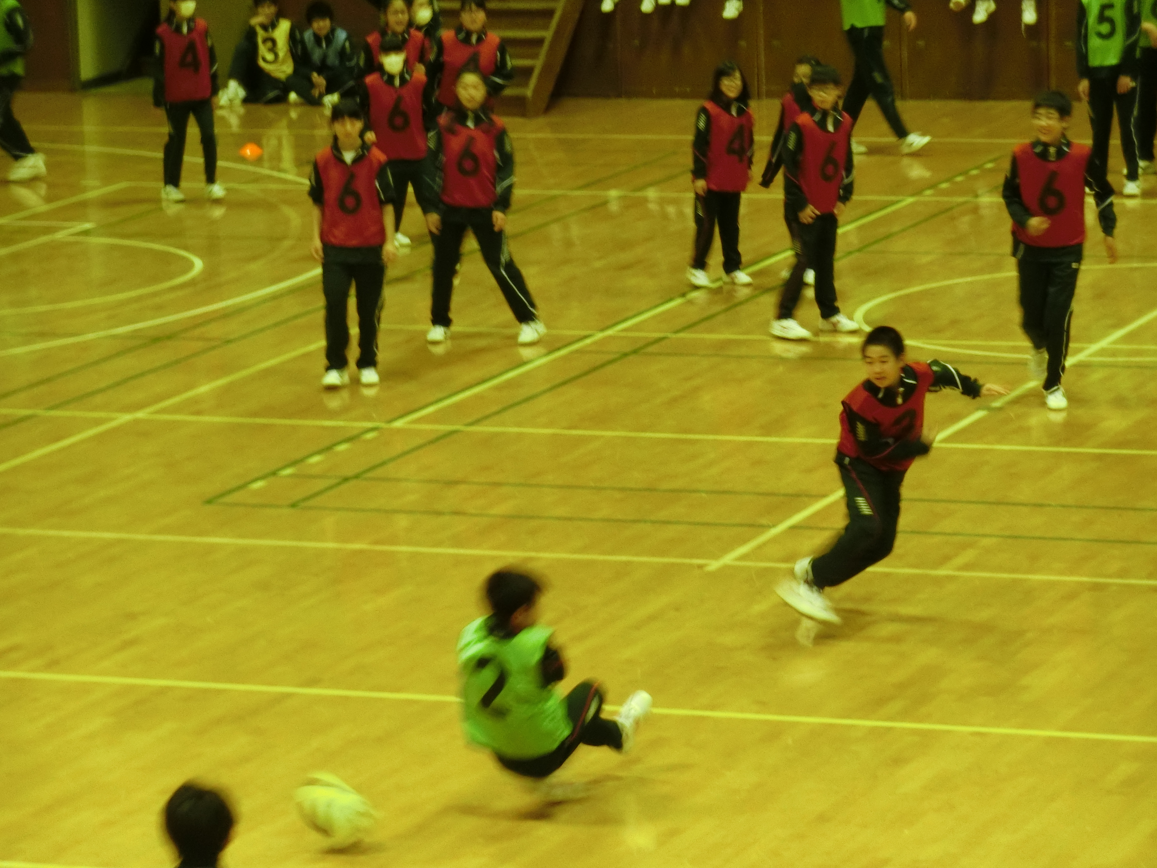 本日は球技大会が行われました。今回は学年・クラスを越えた4色対抗でのドッヂボール、クラス対抗でのドッヂビーの2種目が行われました。ドッヂボールはボール4個で全員で行い、勝ち点を競いました。ドッヂビーではクラス一丸となり頭を使って対戦しました。ドッヂボールは紅組が優勝し、ドッヂビーは、1-2、2-2、3-1がそれぞれ優勝し、賞状を授与されました。今回の球技大会では改めて運動の楽しさを感じ、クラス、学年を越え、中学3学年の団結が深まったのではなでしょうか。