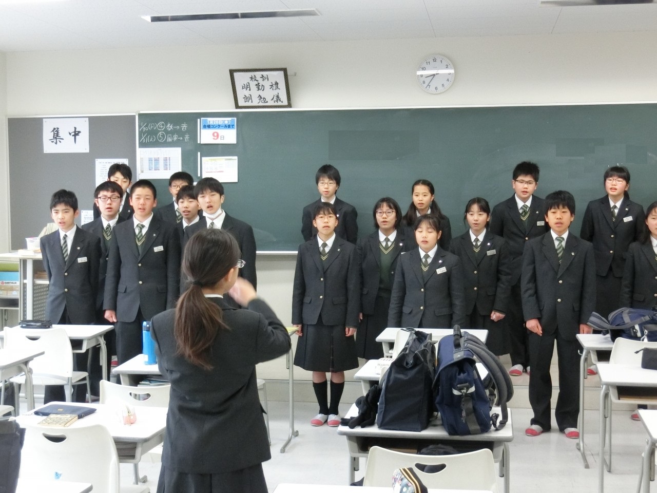 2月4日(土)に行われる合唱コンクールにむけて各クラス、朝、昼、放課後と練習に励んでいます。順番に視聴覚ホールにてピアノを使って練習を行っており、担任の先生も熱のこもった指導をされています。朝のホームルーム前も各クラスで歌声がひびきわたっています。生徒達もクラス一丸となり、本腰が入っています。当日はどんな仕上がりになるのか楽しみです。