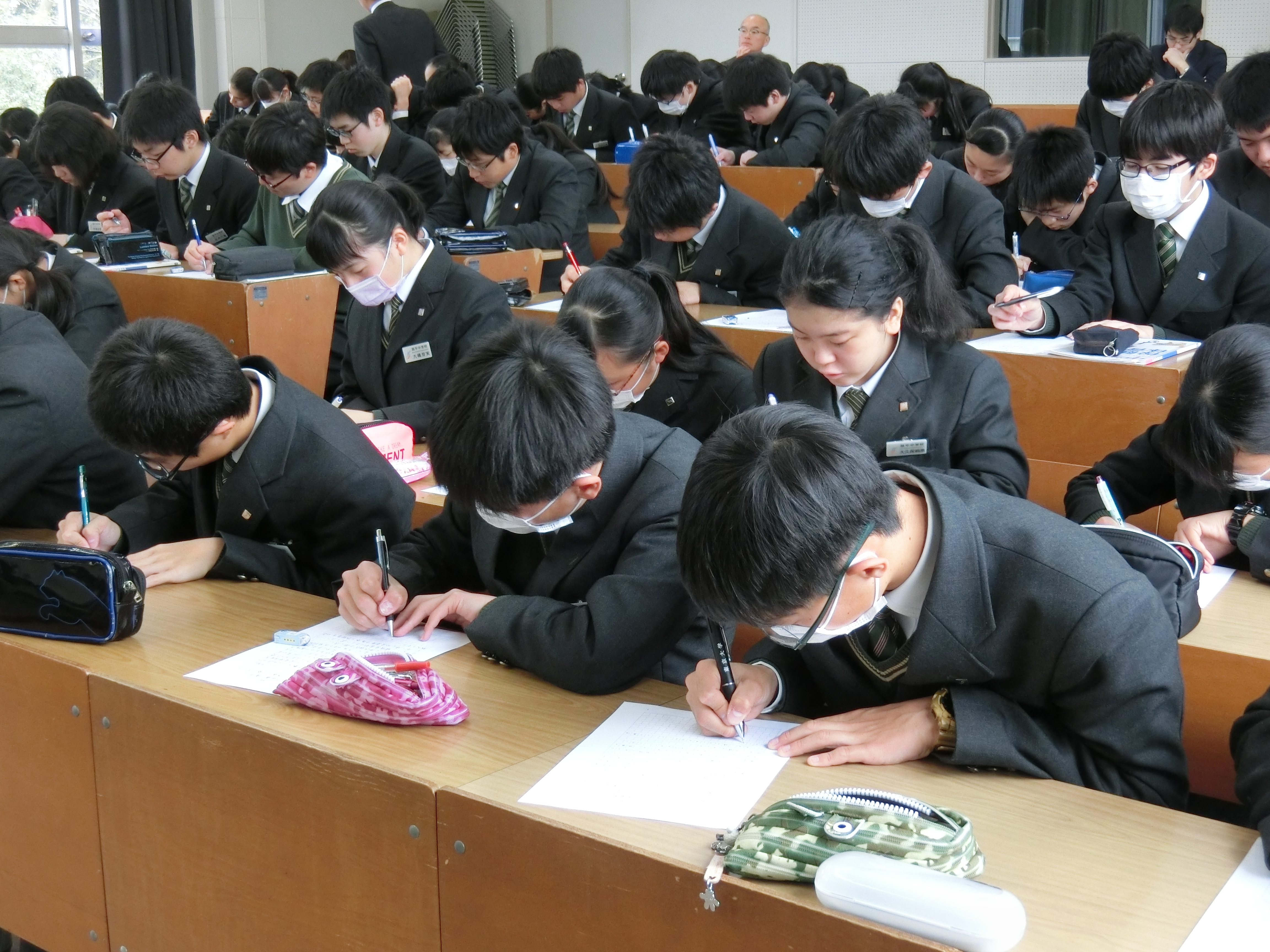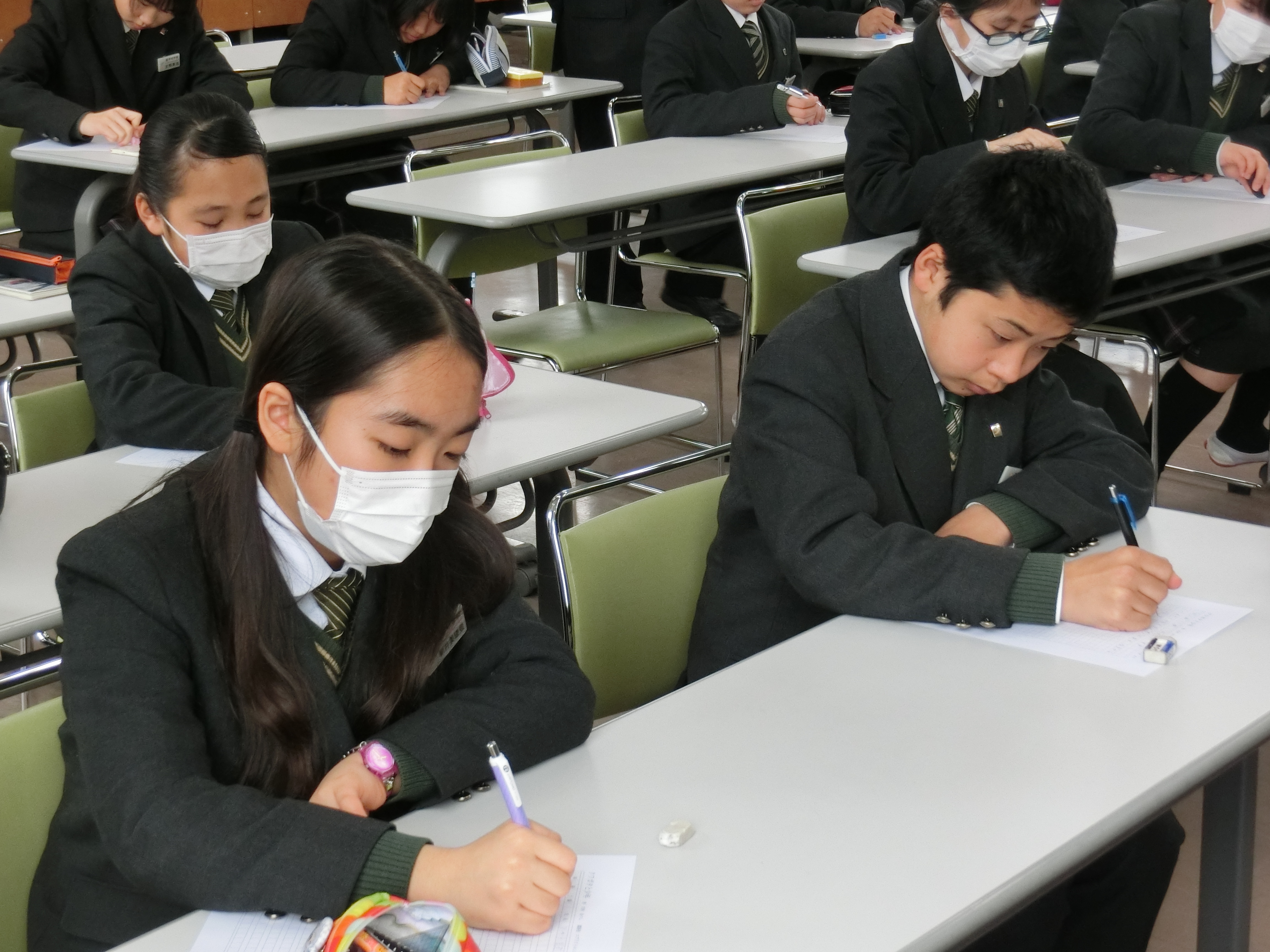 本日1限目に朝礼、教頭講話が行われました。城川校長先生から、まず始めに合唱コンクールに感動しましたとねぎらいのお言葉があり、昨今のグローバル情勢に触れるお話をいただきました。グローバル社会になっている今、日本が美徳としている「謙虚さ」が長所でもあり、短所にもなっている。自分の主張をできずに良いように利用されることもあるので、今から自分の主張をできるように、そしてそれを英語でできるようにとのお話がありました。その後本間教頭から、短編小説『エブリリトルシング』より「クワガタと少年」の紹介があり、全員で視聴し、感想やそれぞれが思ったことを書きました。先ほどの校長からのグローバル社会では自分の主張をできるようにとのお話もありましたが、様々な違いや、異なる意見を受け入れることもコミュニケーションにおいて重要なことです。本日1限目はその両方を考えることができる機会になったのではないかと思います。